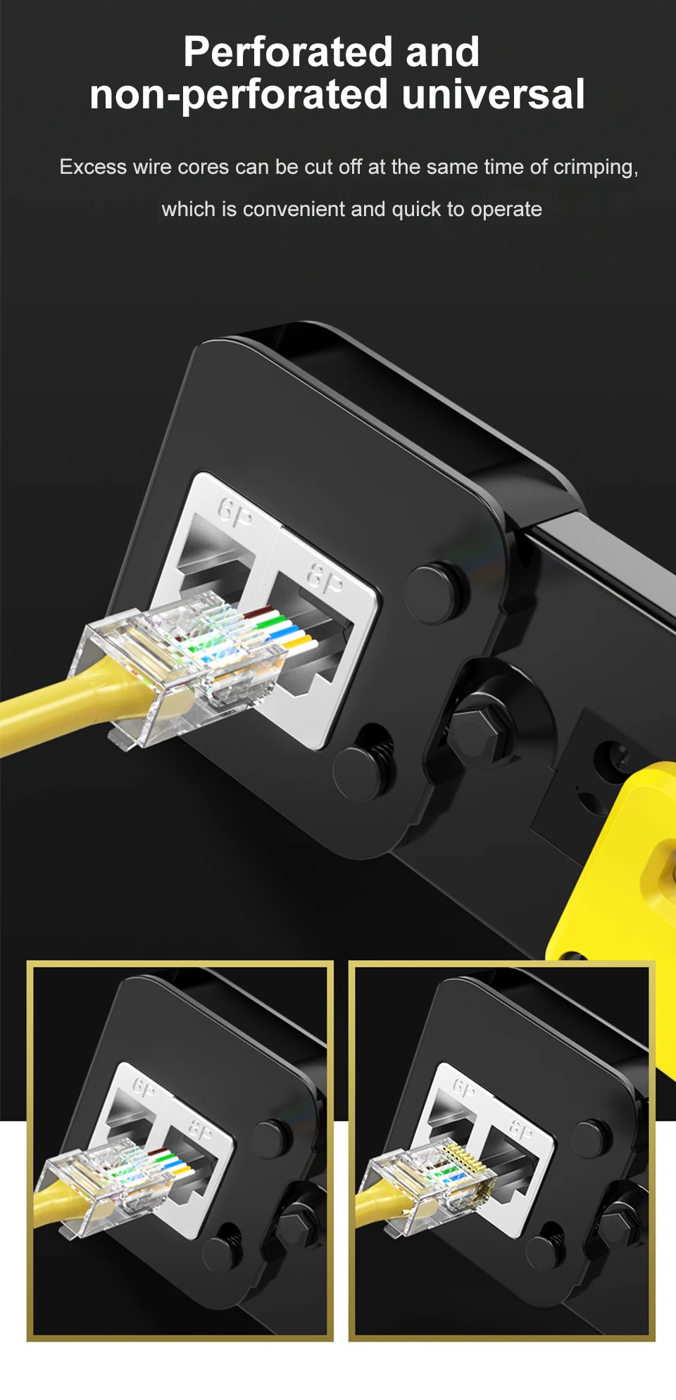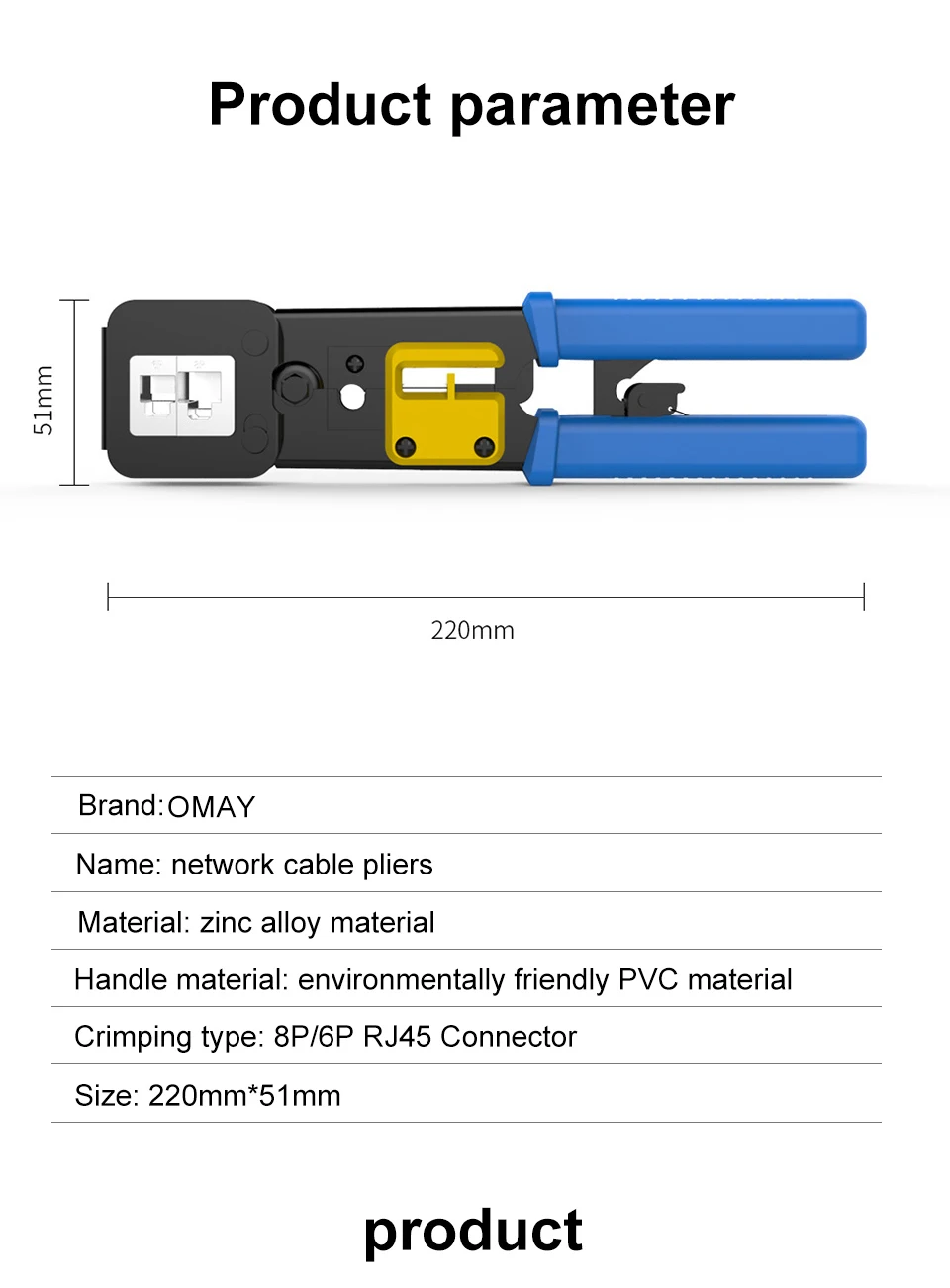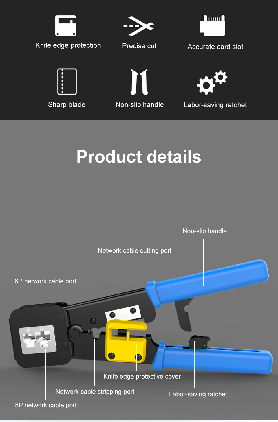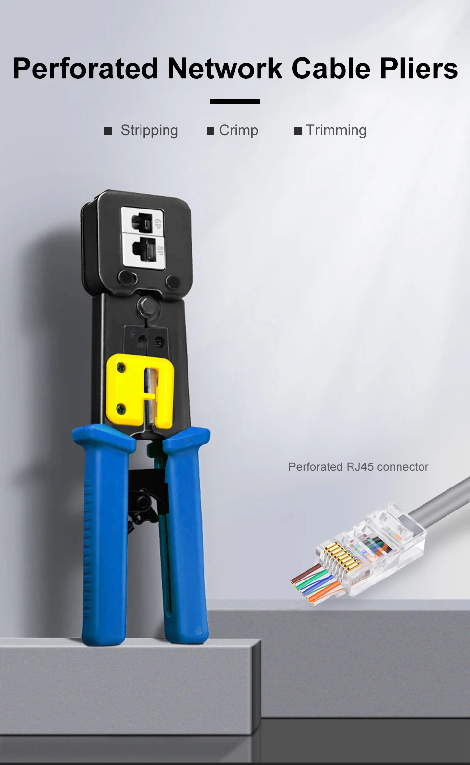 Comprar OMAY RJ45 RJ11 herramienta de engarzado paso a través de Cat5 Cat5e Cat6 cortador pelador para RJ12 8P 6P conector de paso final
