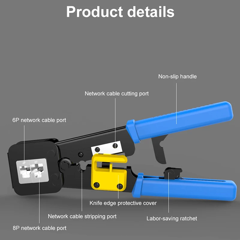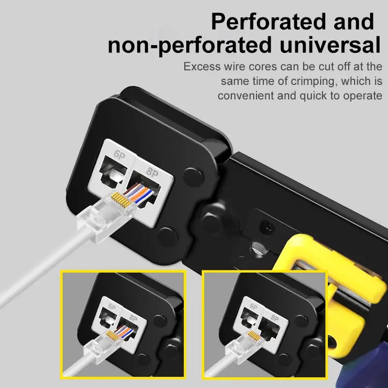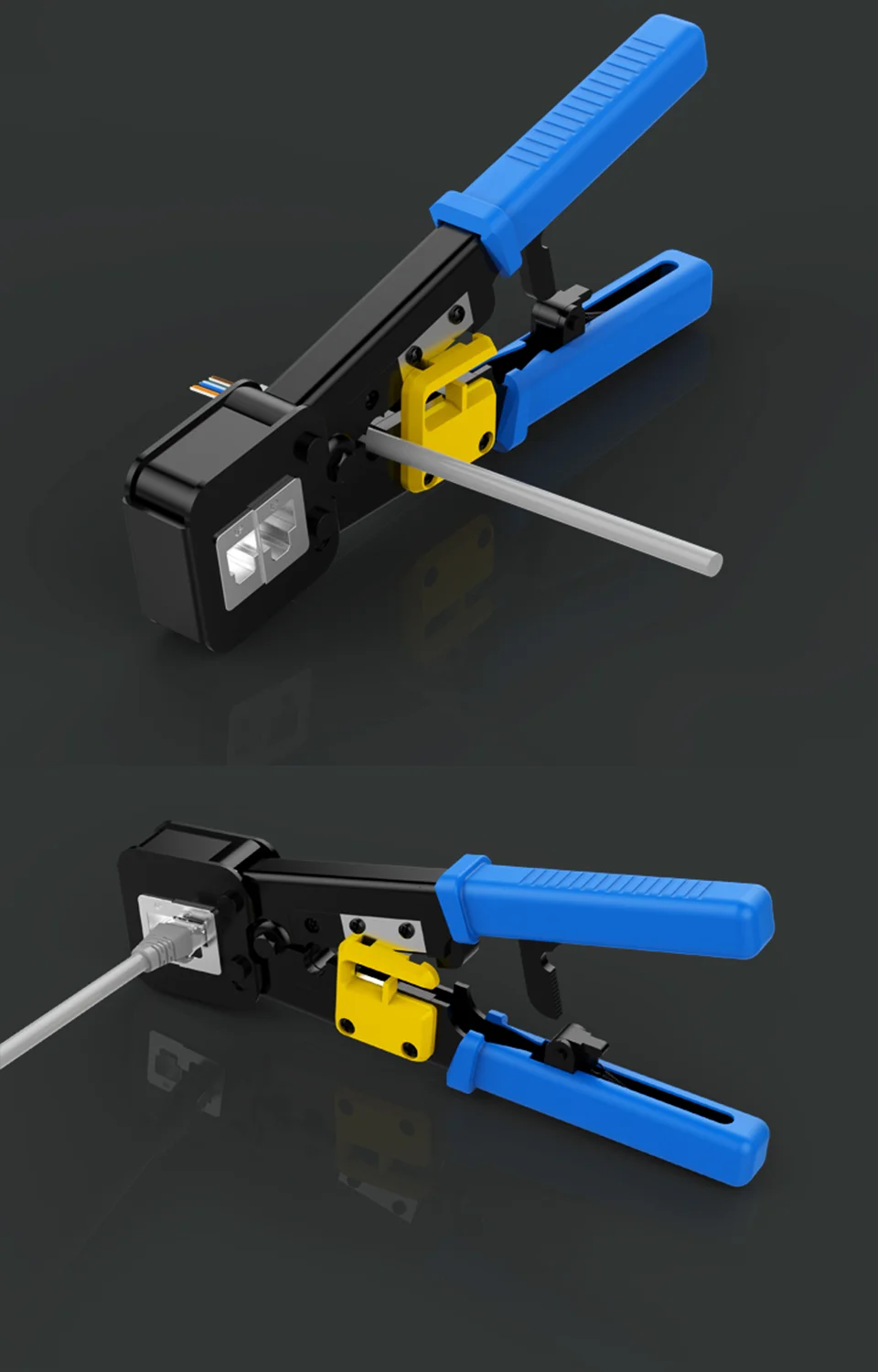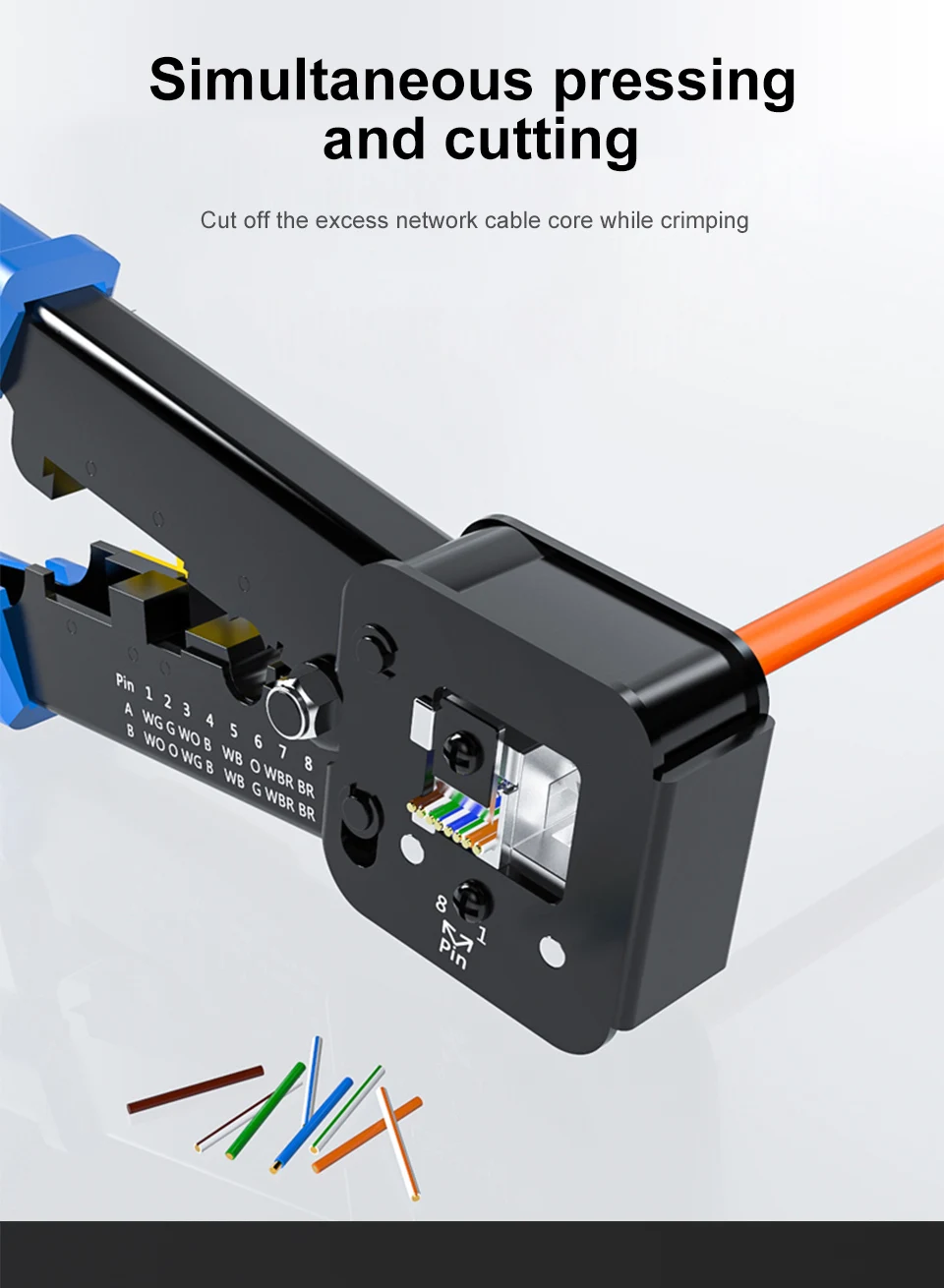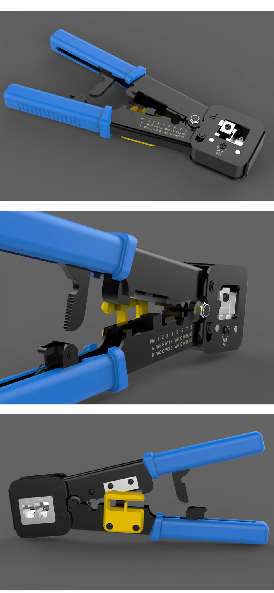 Comprar OMAY RJ45 RJ11 herramienta de engarzado paso a través de Cat5 Cat5e Cat6 cortador pelador para RJ12 8P 6P conector de paso final