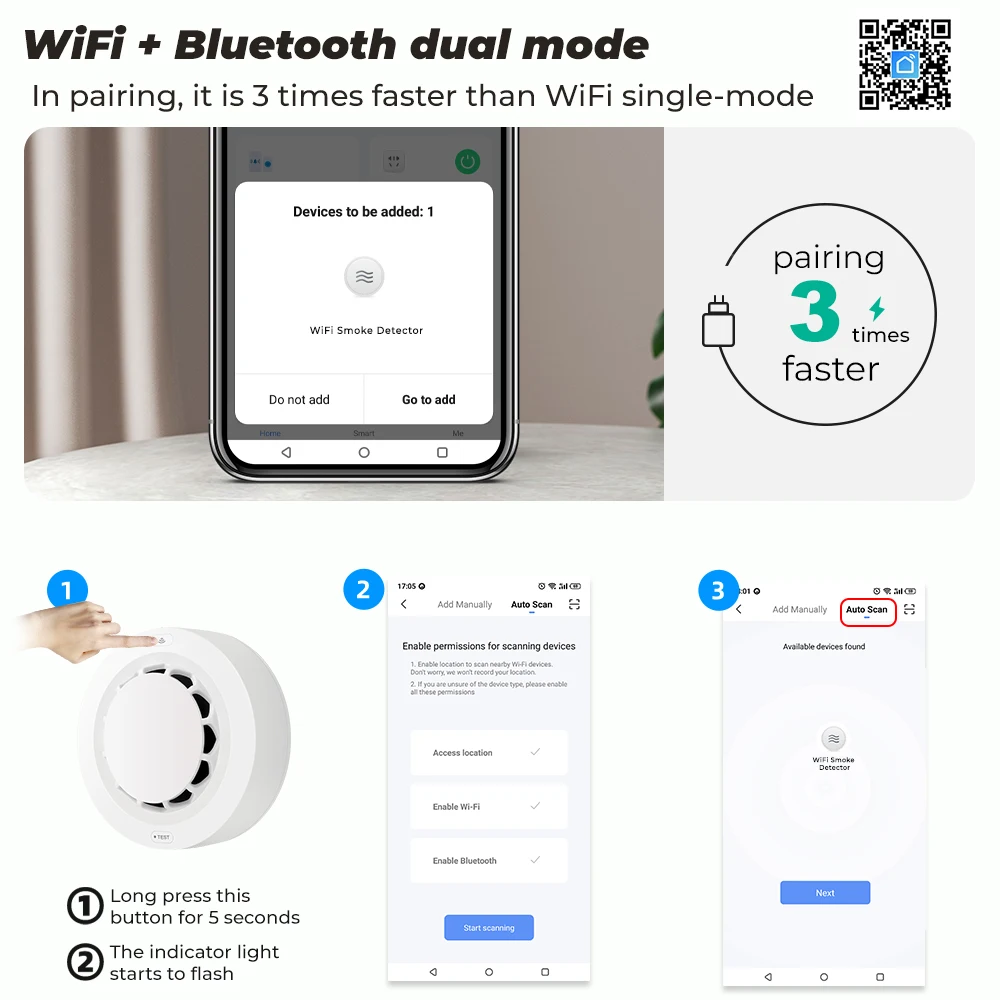 • Conectividad WiFi:Con la conectividad WiFi, puede integrar fácilmente este detector de humo en su sistema de seguridad para el hogar existente y controlarlo de forma remota utilizando la aplicación Smart Life.
