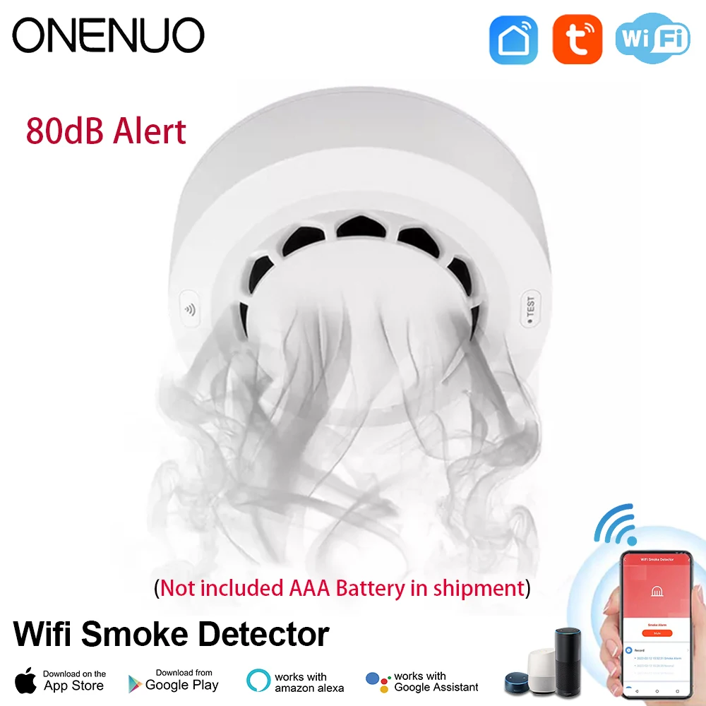 Comprar ONENUO Tuya-Detector de humo con WiFi, Sensor fotoeléctrico, alarma contra incendios, sistema de seguridad para la cocina del hogar, funciona con la aplicación Smart Life
