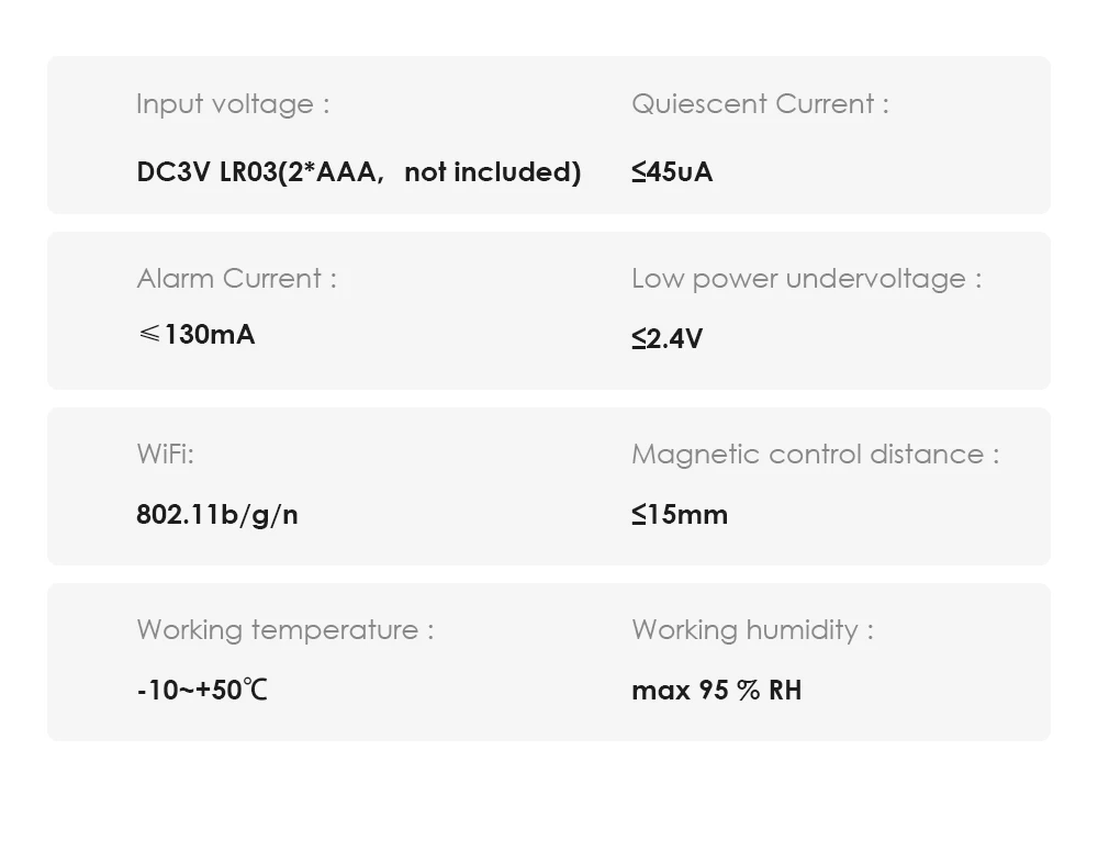 • Conectividad WiFi :Se conecta a la red WiFi de su hogar, lo que le permite monitorear sus puertas y ventanas desde cualquier lugar con su teléfono inteligente.