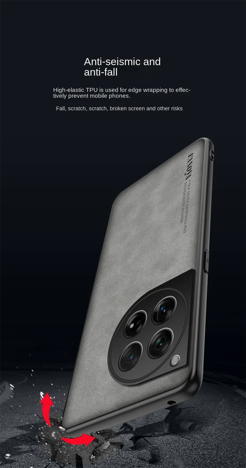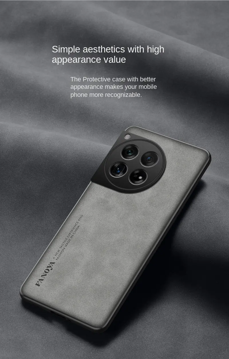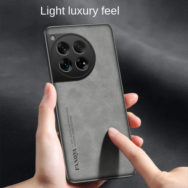 Nombre del producto: Funda trasera de cuero PU con calidad de piel para PC, funda dura para teléfono OnePlus 12 PJD110