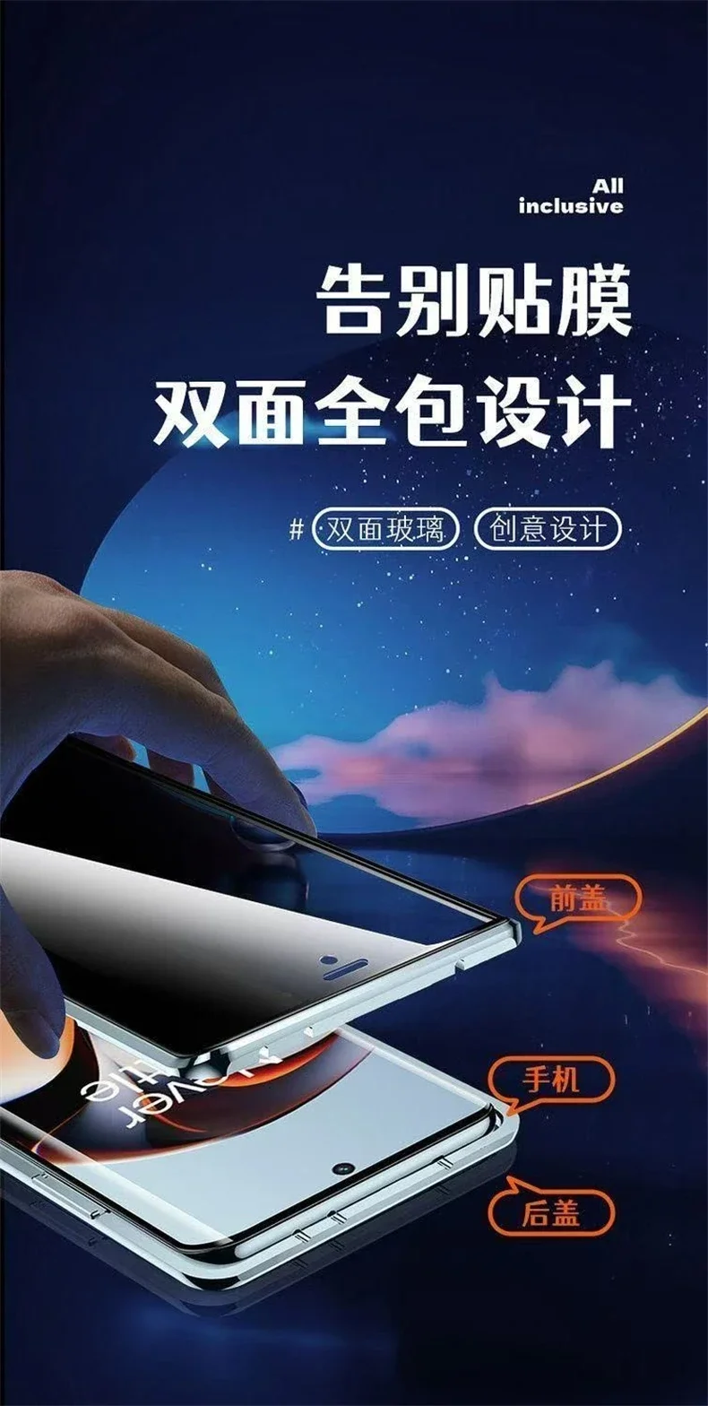 La parte delantera y trasera son de vidrio templado, ya no necesitan protector de pantalla.Los imanes conectan la parte delantera y trasera.Muy conveniente.