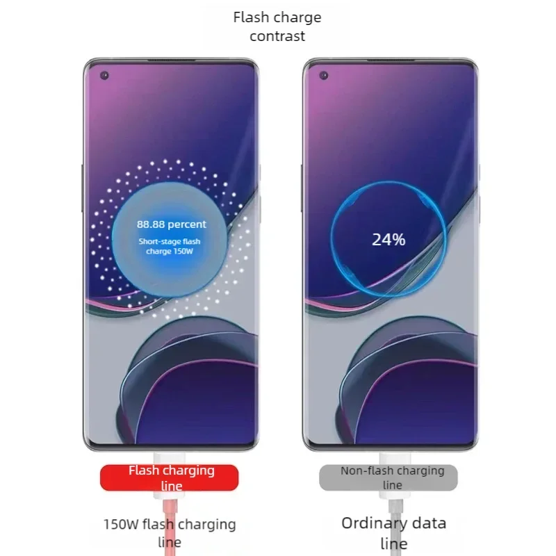 Soporte completo de SUPERVOOC, 120W probado en un Realme GT6. La cubierta es de plástico/goma, preferiría que fuera de nailon trenzado, pero de todas formas se ve bien.