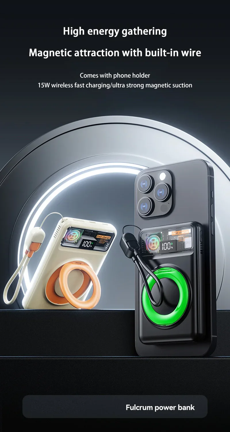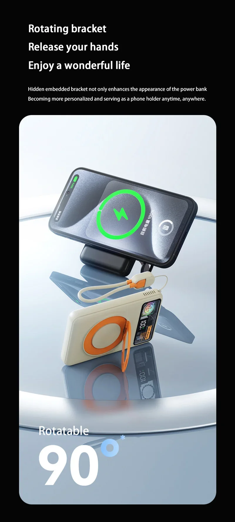 Xiaomi 50000mAh LED Digital magnético inalámbrico PD20W banco de energía Digital con soporte de Cable de carga incorporado turbina de refrigeración nuevo