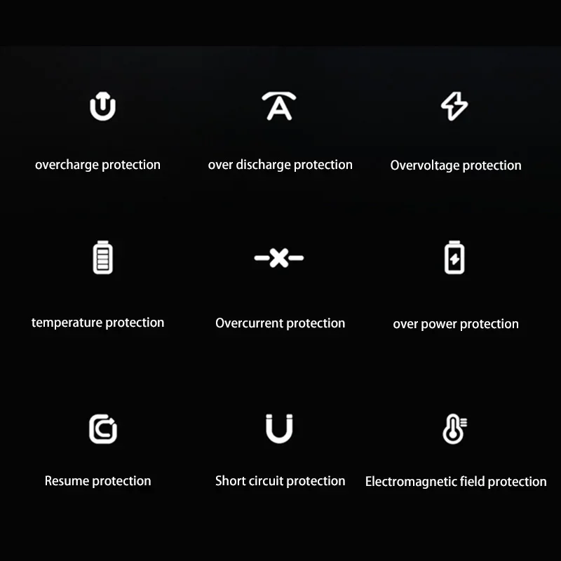Capacidad nominal: 10000 mAh/30000 mAh/50000 mAh (la capacidad nominal es la capacidad real que puede cargar el dispositivo con éxito.)Annotación:Dado que el tesoro de carga se verá afectado por factores como la tasa de conversión y el autoconsumo en el proceso de salida del dispositivo receptor, la energía se consumirá hasta cierto punto.