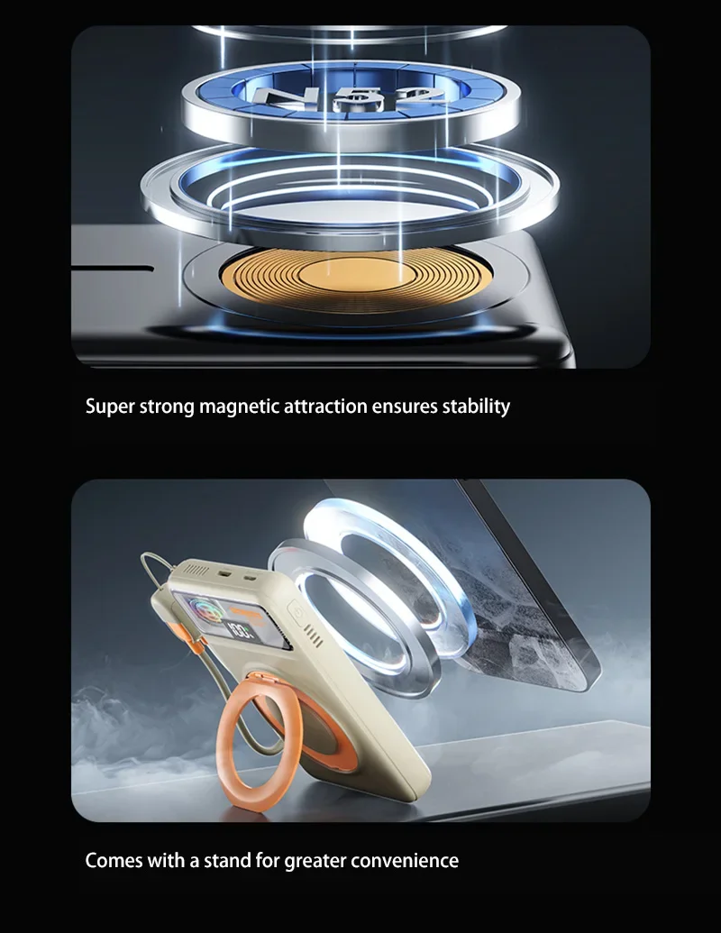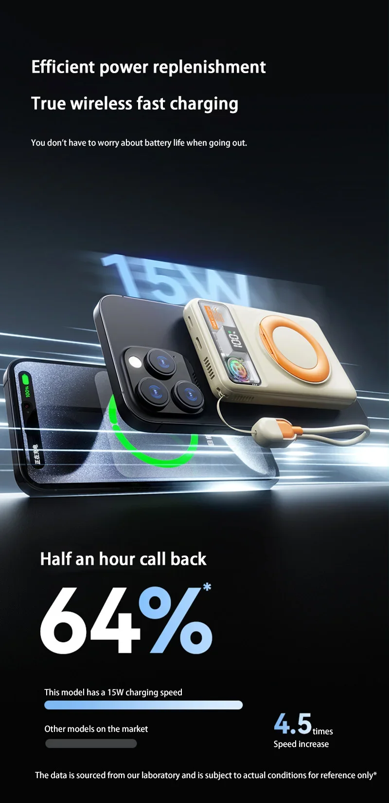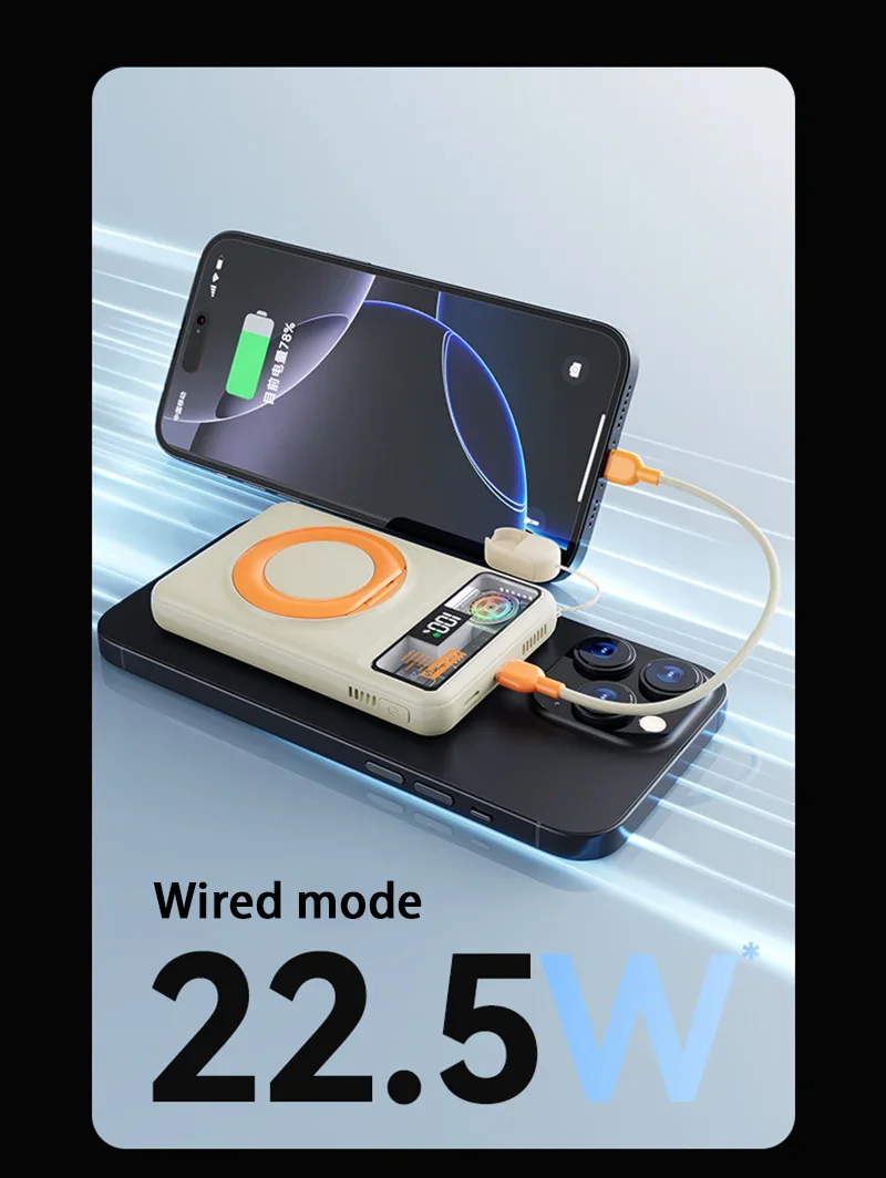 1.Carga por cable Carga rápida de 22,5 W y carga magnética inalámbrica PD20W, PD15W.