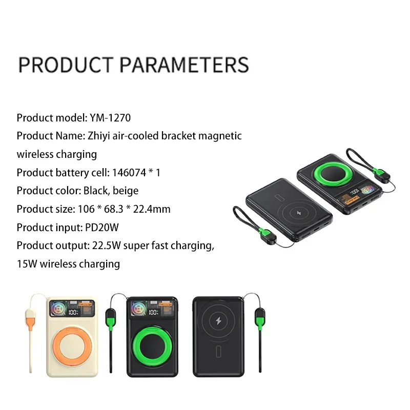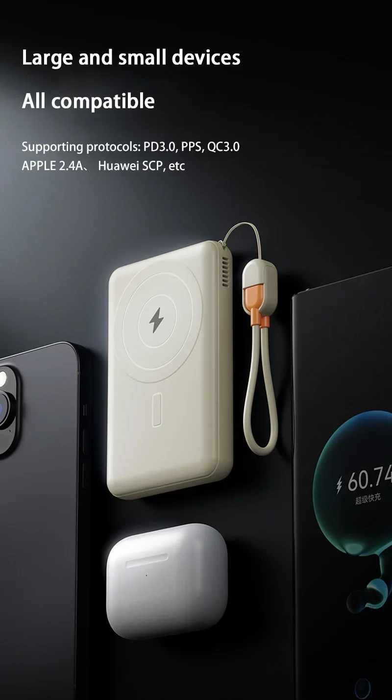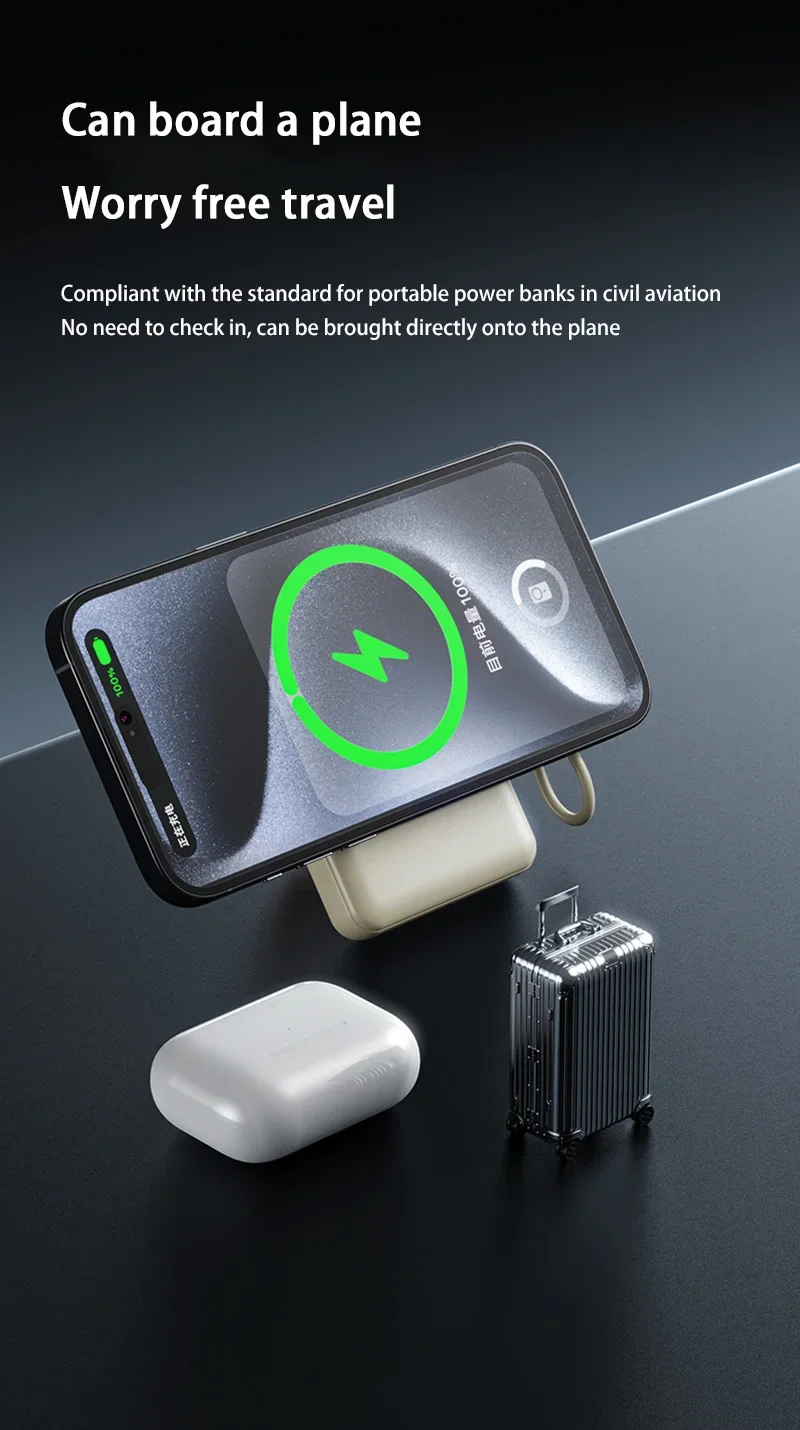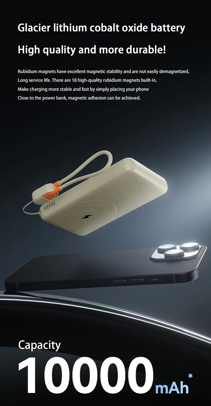 Accesorios que incluyen: Banco de energía inalámbrico * 1, cable de carga tipo c * 1, caja al por menor * 1, manual de usuario * 1 unidad.