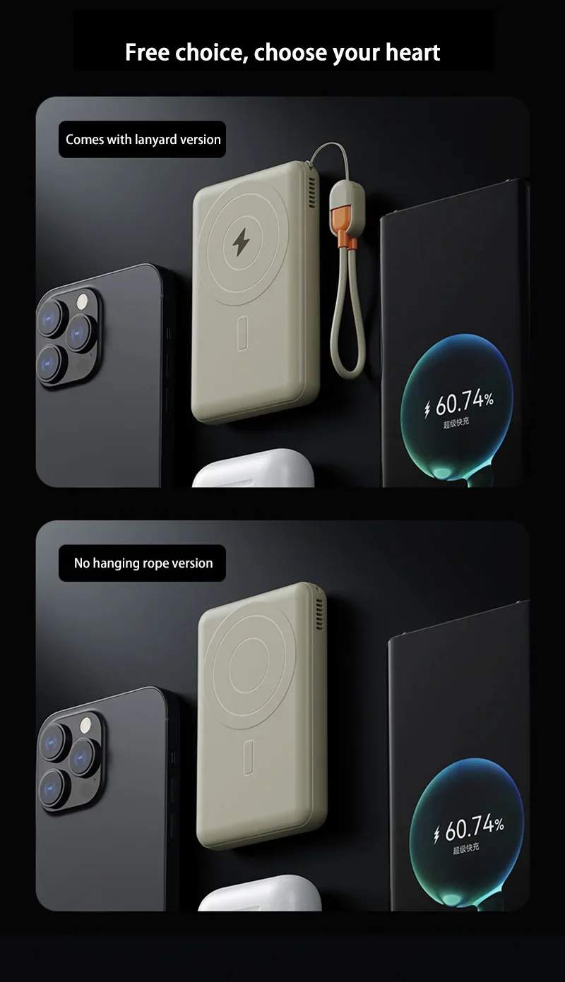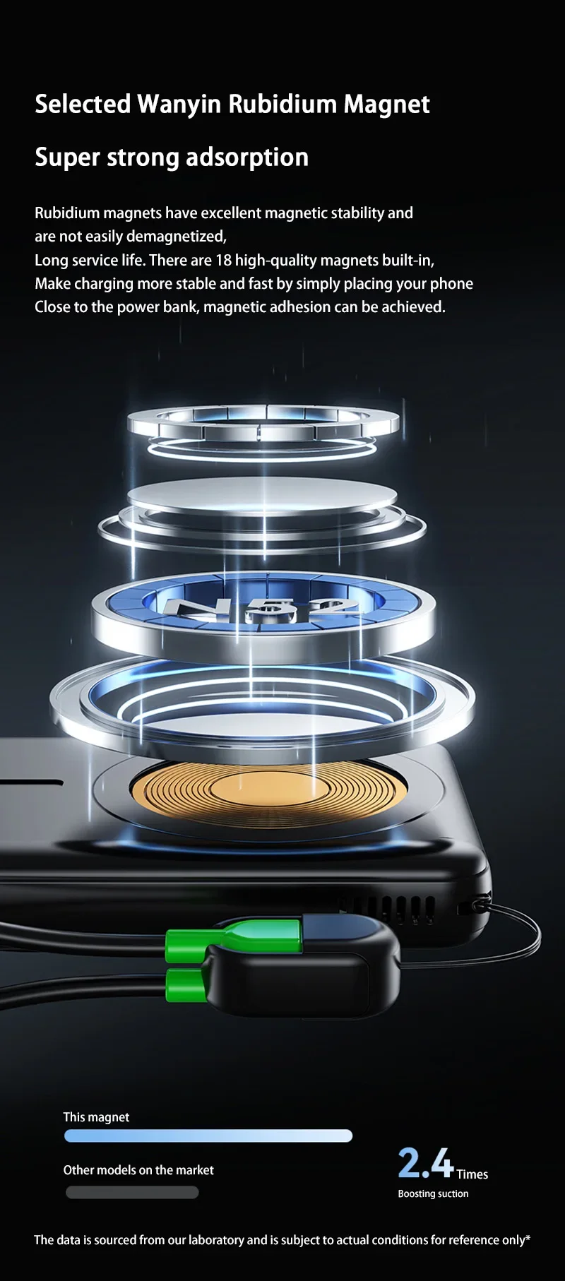 4.Fuerza de adsorción magnética súper fuerte, se puede alinear automáticamente con el área de carga del teléfono móvil para su adsorción.