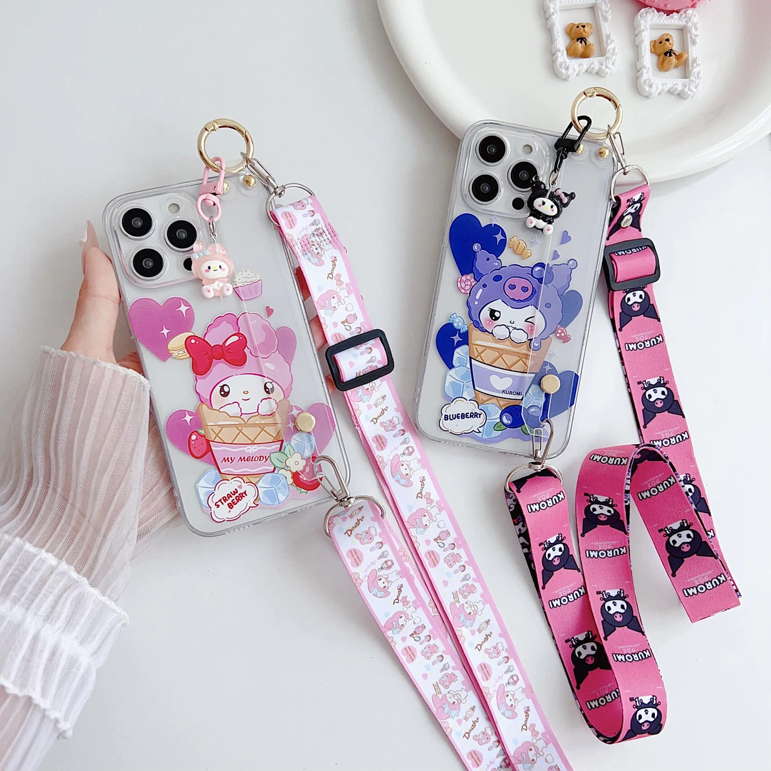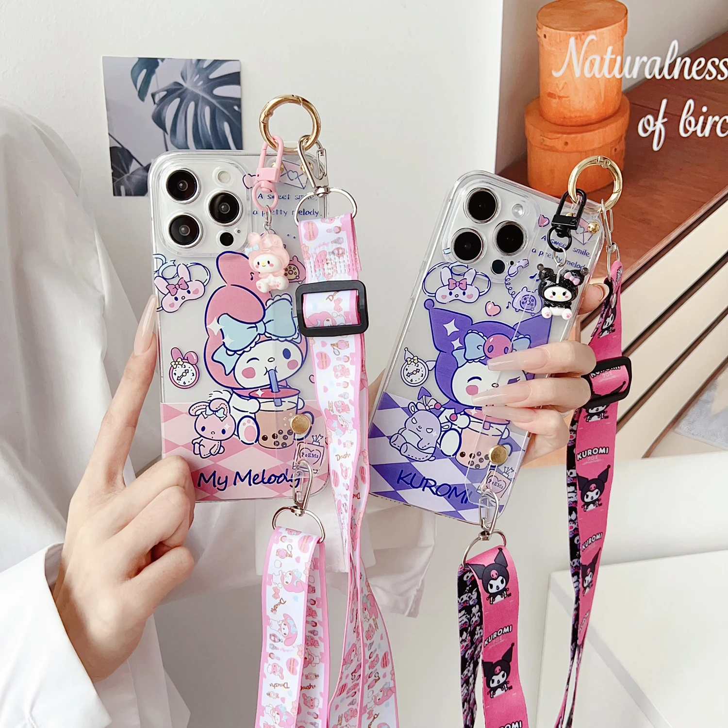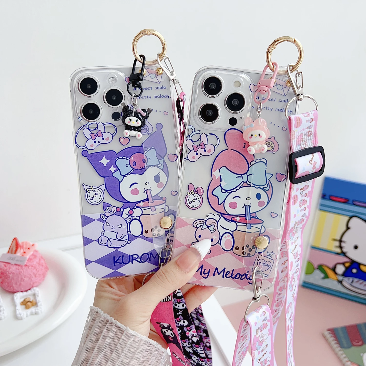 Comprar Para OnePlus 6 7 8 9 10 11 Pro T R RT Pro té de la leche Kuromi funda adorno de correa de muñeca