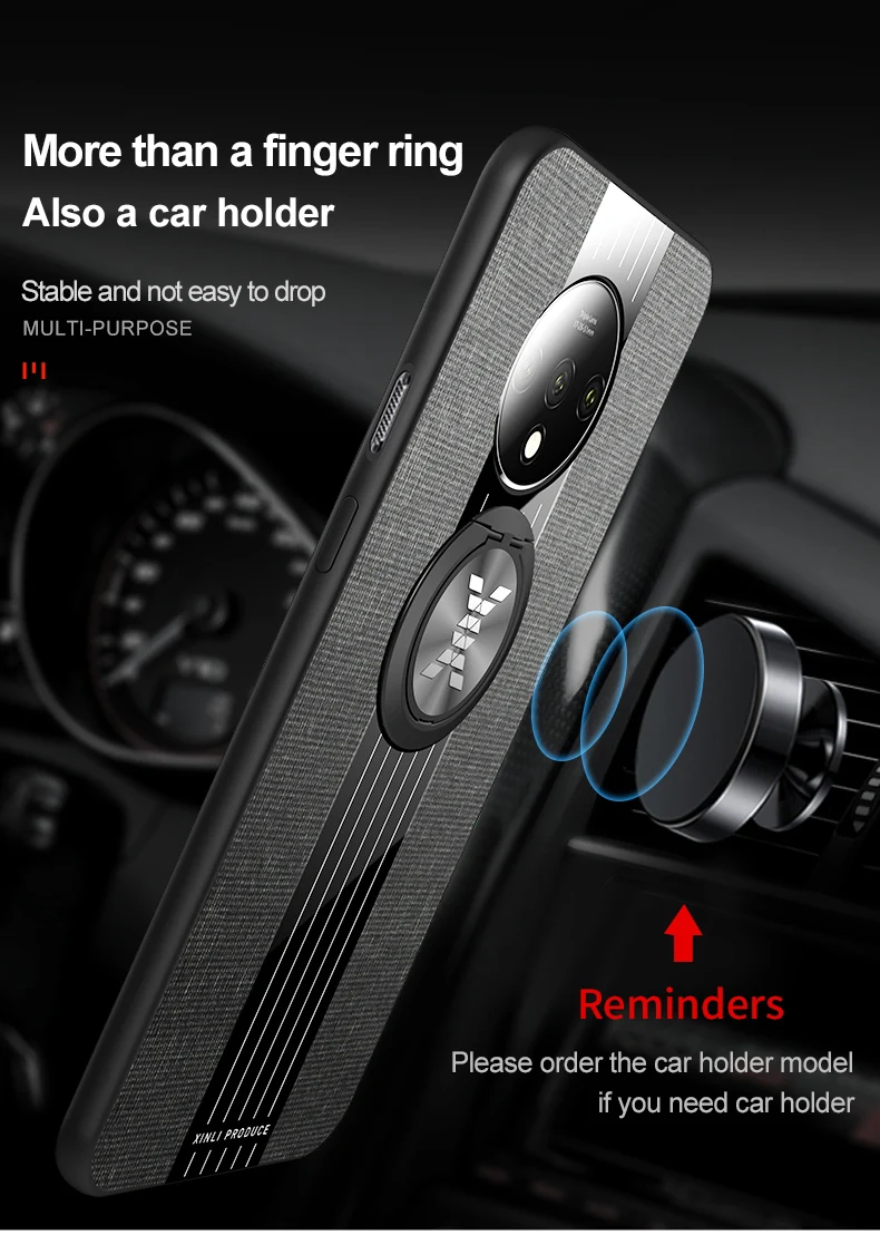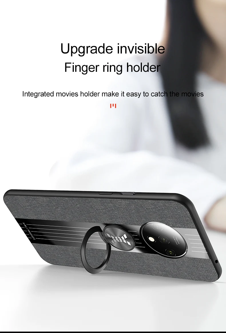 Para OnePlus 7T funda de lujo de tela dura con soporte de anillo imán funda protectora trasera delgada para one plus 7t oneplus 7T 1 + 7t