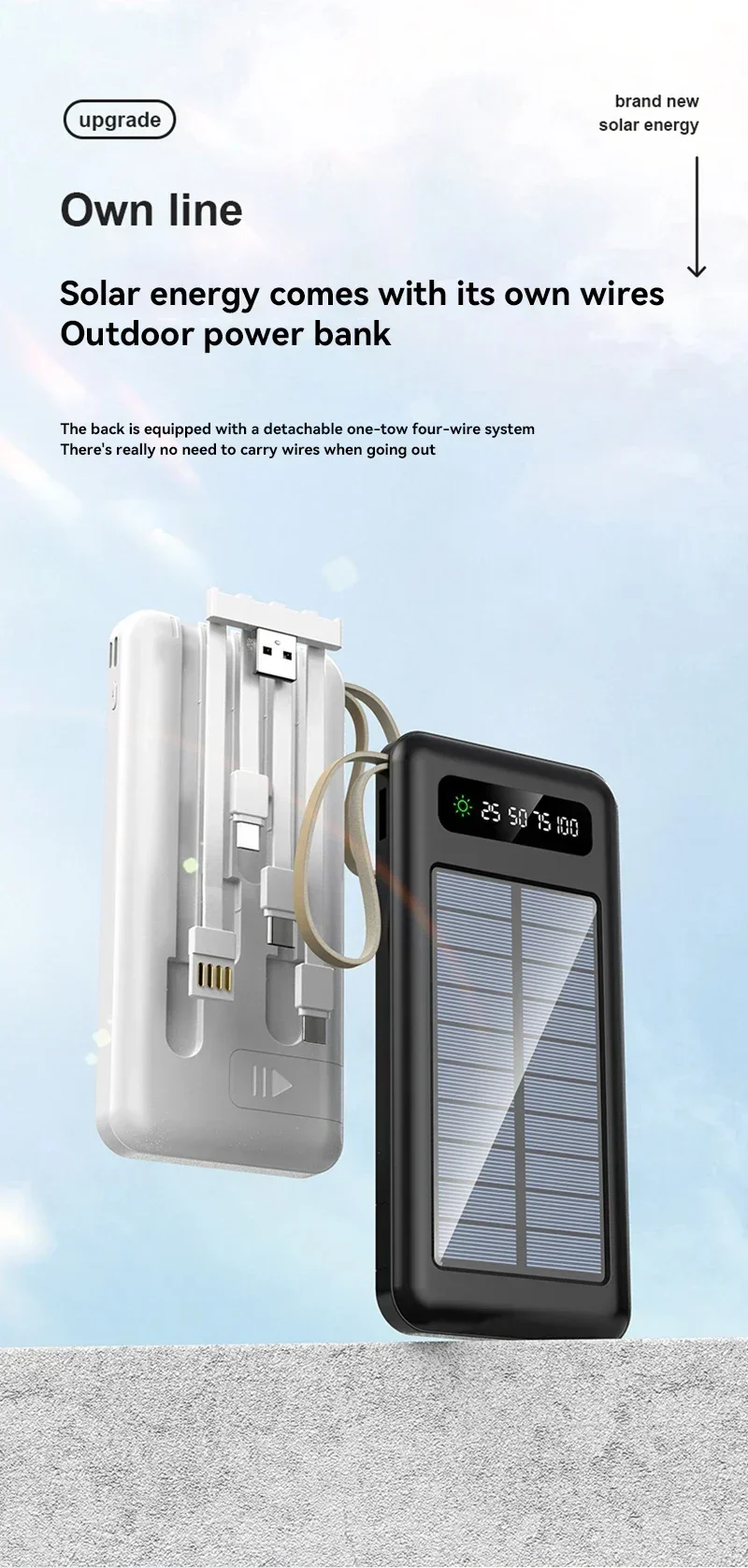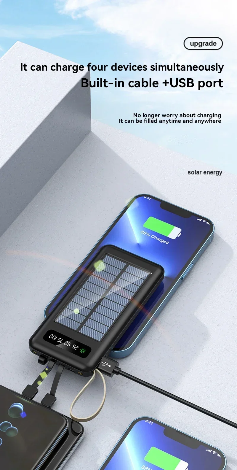La carga rápida inteligente de 2,1 A y el cable incorporado desmontable hacen que la carga sea más conveniente.