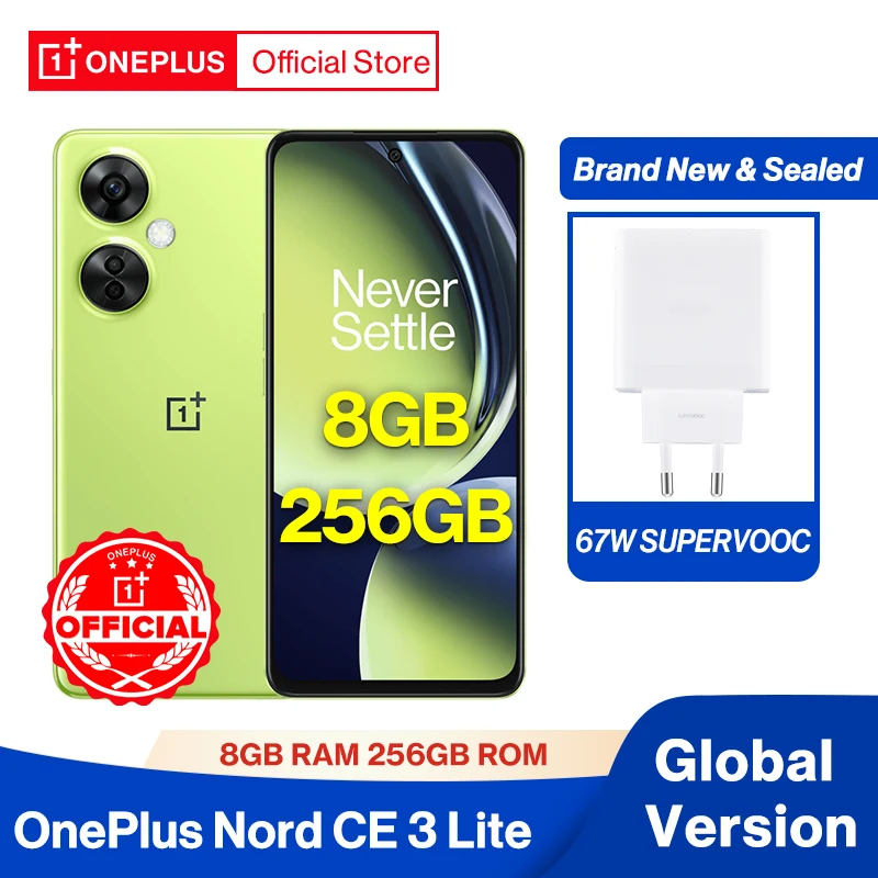 Comprar OnePlus-Nord CE 3 Lite 5G, 8GB, 256GB, cámara de 108MP, SUPERVOOC, carga de 67W, batería de 5000mAh, NFC, versión Global