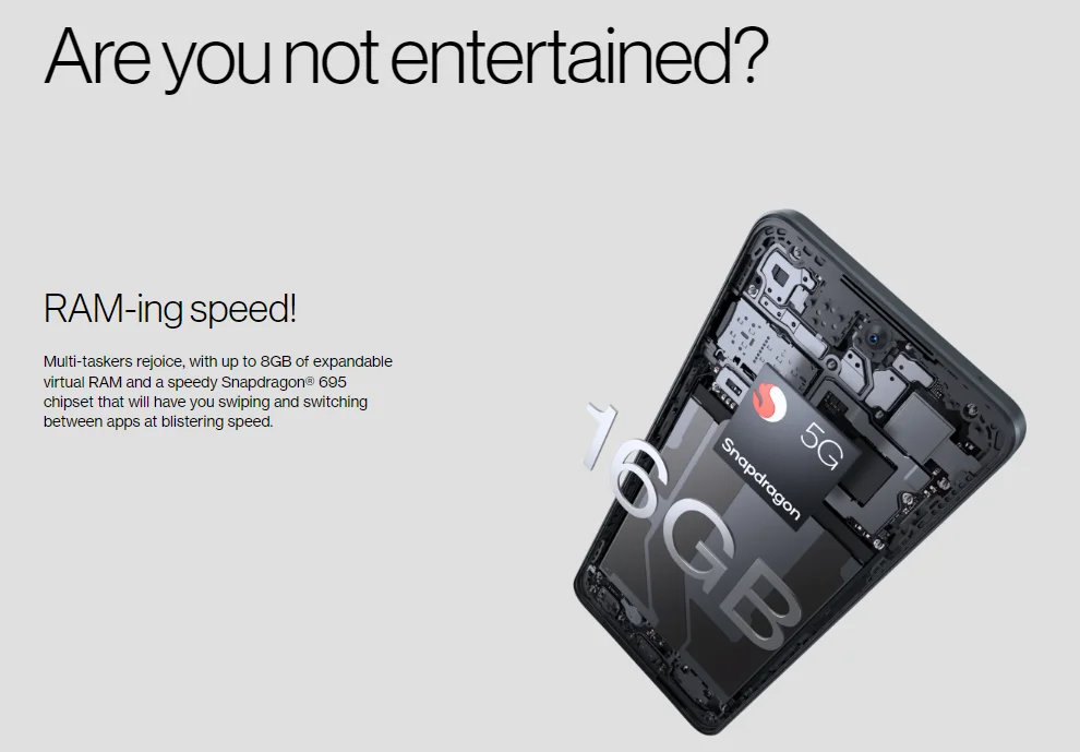 CPU: Qualcomm Snapdragon 695 5G Chipset.GPU: Adreno 619.