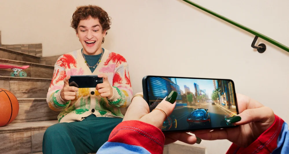 Piérdete en tus películas y programas favoritos con una enorme pantalla LCD de 17,07 cm (6,72 ") y una rápida frecuencia de actualización adaptativa de 120Hz que ahorra batería para que puedas ver más tiempo. Y para toda la experiencia cinematográfica, guarda tus auriculares y sintoniza los altavoces estéreo duales en auge.