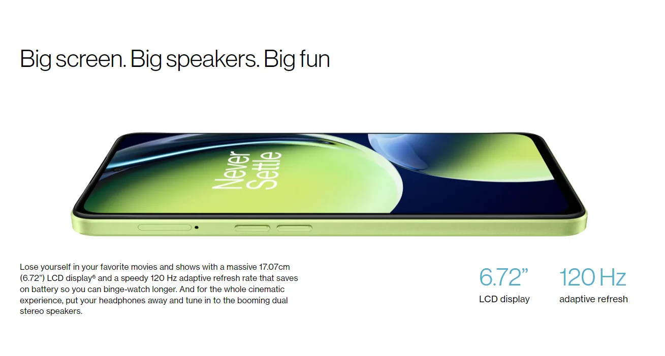 6. La pantalla se caracteriza por sus esquinas redondeadas y se mide según un rectángulo estándar. El tamaño de la pantalla del OnePlus Nord CE 3 Lite 5G es de 17,07 cm (6,72 pulgadas). Debido a las esquinas redondeadas y al recorte de la Cámara, el área visible real será ligeramente más pequeña que dicho tamaño de pantalla. La resolución de la pantalla corresponde a un rectángulo estándar, y el recuento real de píxeles efectivos de la pantalla es ligeramente inferior.