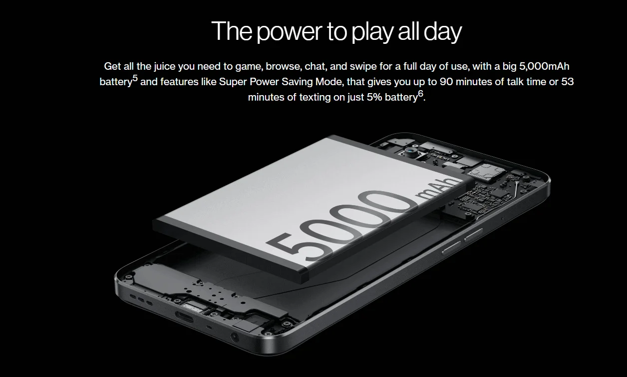 Obtén todo el jugo que necesitas para jugar, navegar, chatear y deslizar durante un día completo de uso, con una gran batería de 5.000 mAh y funciones como el modo de ahorro de energía. que le da hasta 90 minutos de tiempo de conversación o 53 minutos de mensajes de texto con solo 5% de batería.