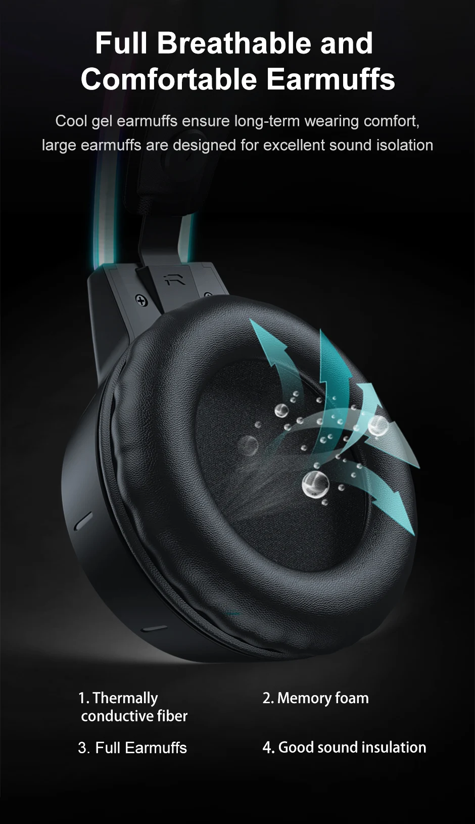 3. última búsqueda de confort: 268g diseño ligero, transpirable todo incluido orejeras, haz de cabeza adaptable, todos esos diseño dulce se asegurará de su comodidad en mucho tiempo usando.
