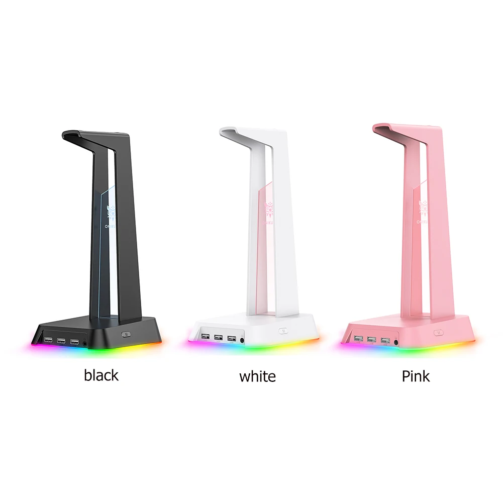 ONIKUMA soporte de exhibición para auriculares ST-2 con 3 puertos USB + Audio soporte para auriculares soporte para colgar en el escritorio accesorio de almacenamiento