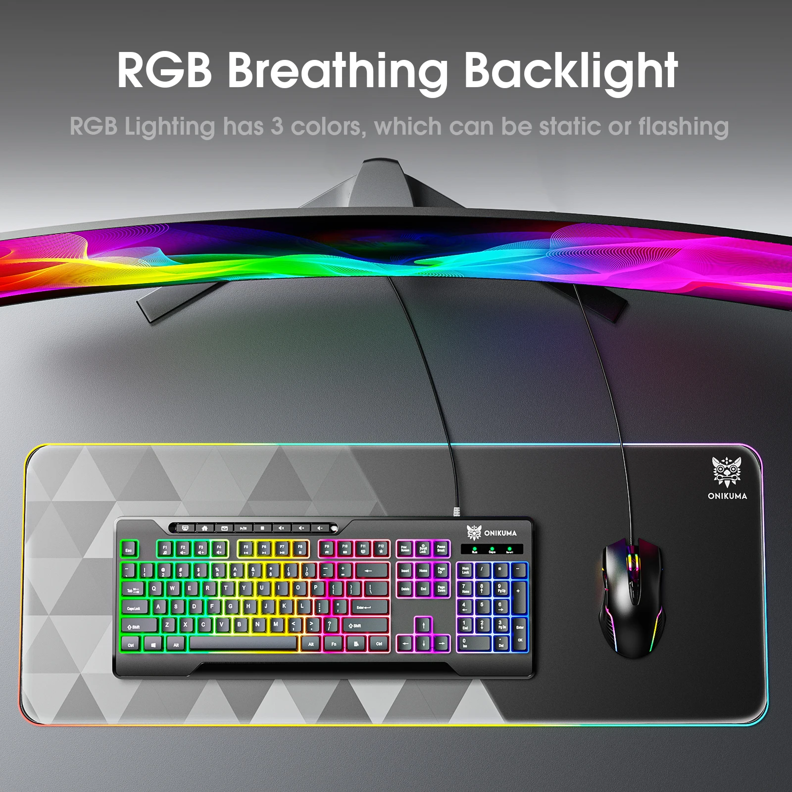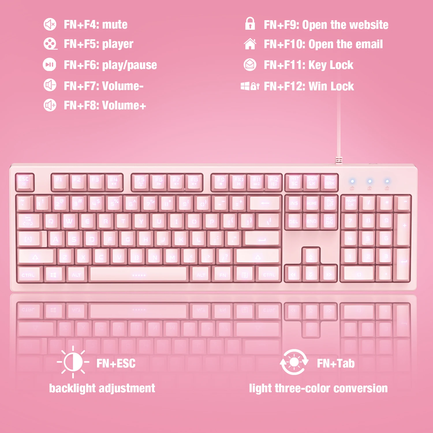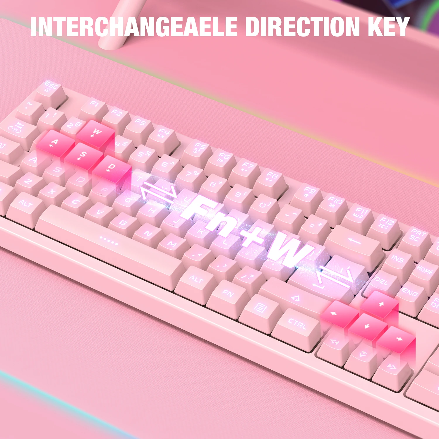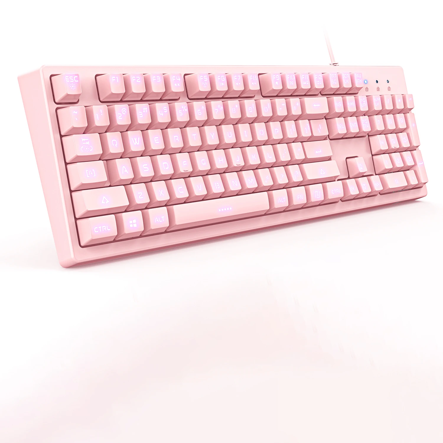 Comprar ONIKUMA-teclado para videojuegos con retroiluminación LED, teclado bonito con cable rosa, 104 teclas, diseño ergonómico, para PC, portátil y tableta