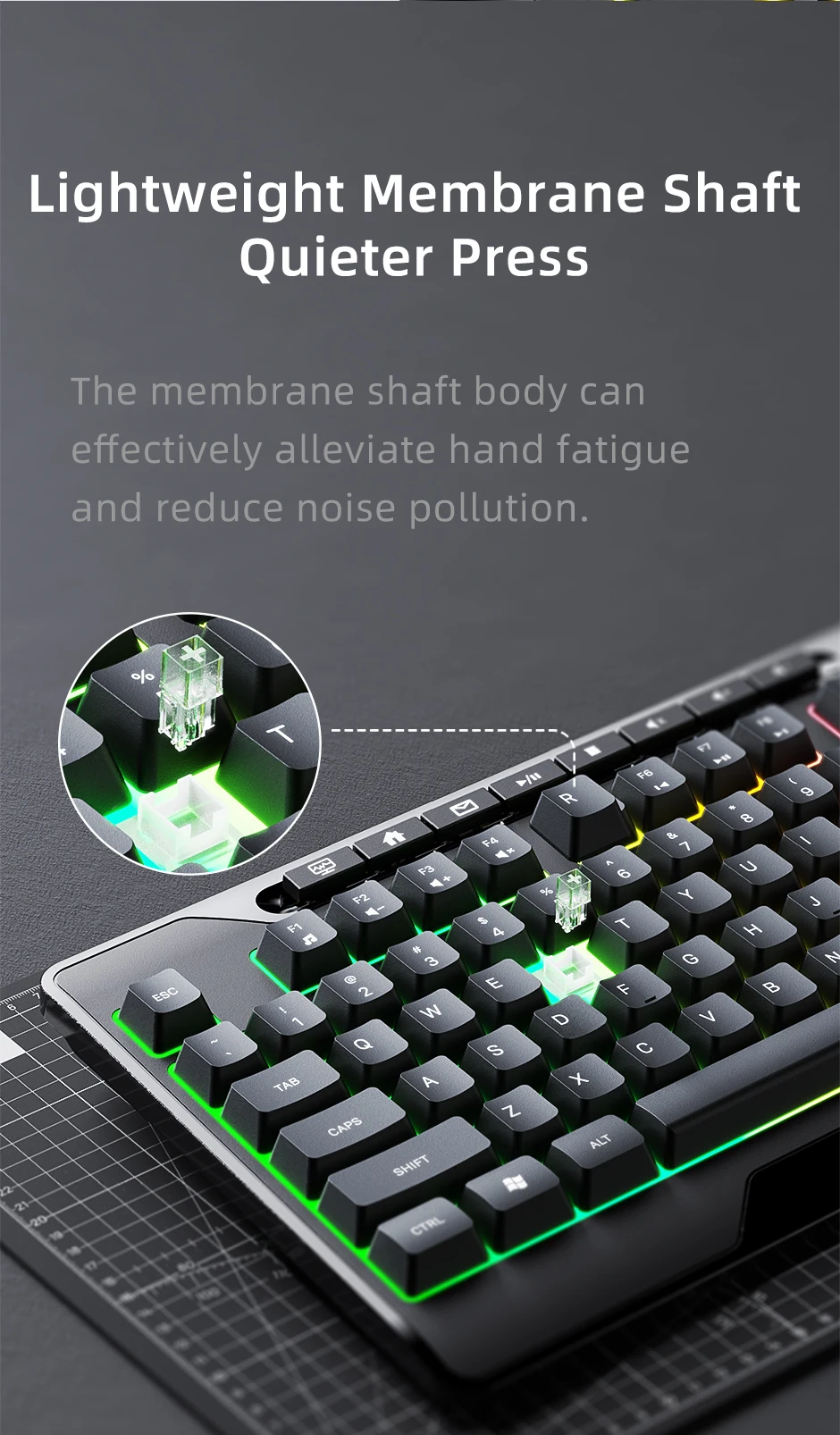 • Teclado de 104 teclas :El teclado de 104 teclas ofrece una amplia gama de funciones, incluyendo teclas de control de volumen y teclas de macro, para una experiencia de juego optimizada.