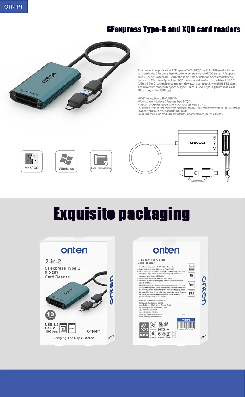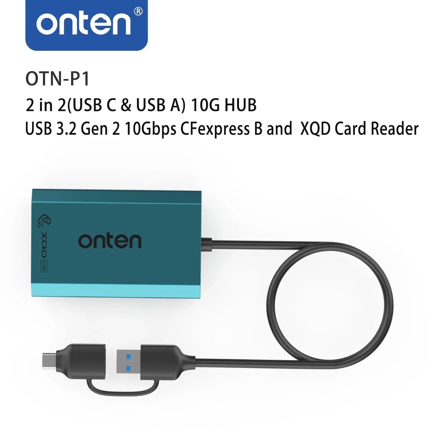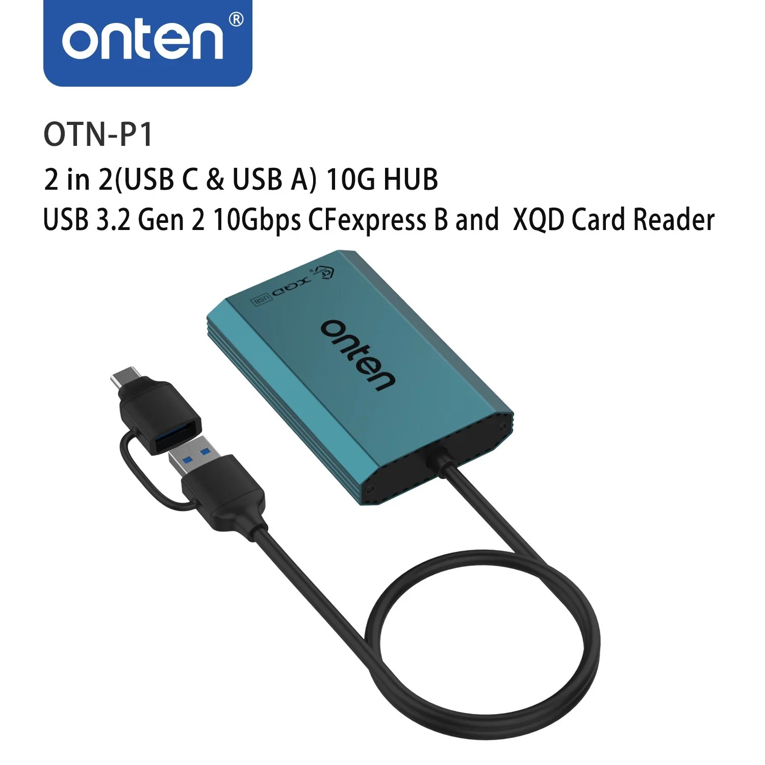 Comprar ONTEN-lector de tarjetas OTN-P1 2 en 2, concentrador USB 3,2 Gen 2, 10Gbps, CFexpress B y XQD
