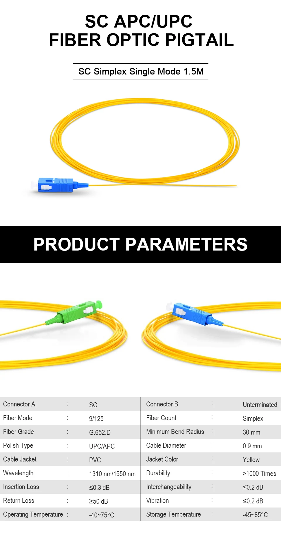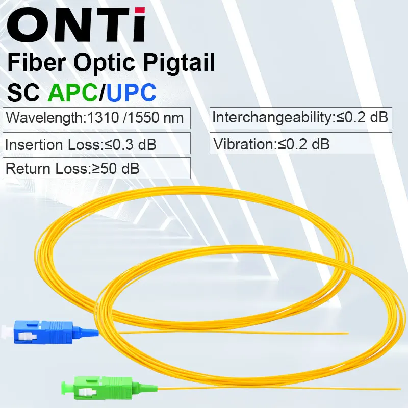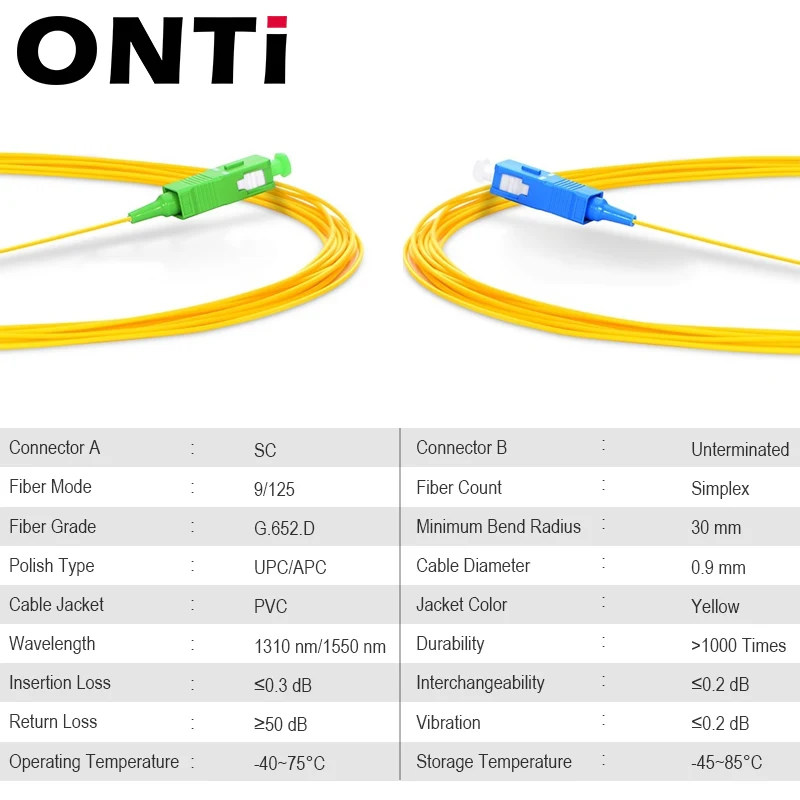 Comprar ONTi 20/50/100/200 unids/lote SC APC/UPC coleta de fibra Simplex 9/125 1M coleta de fibra óptica monomodo 0,9mm