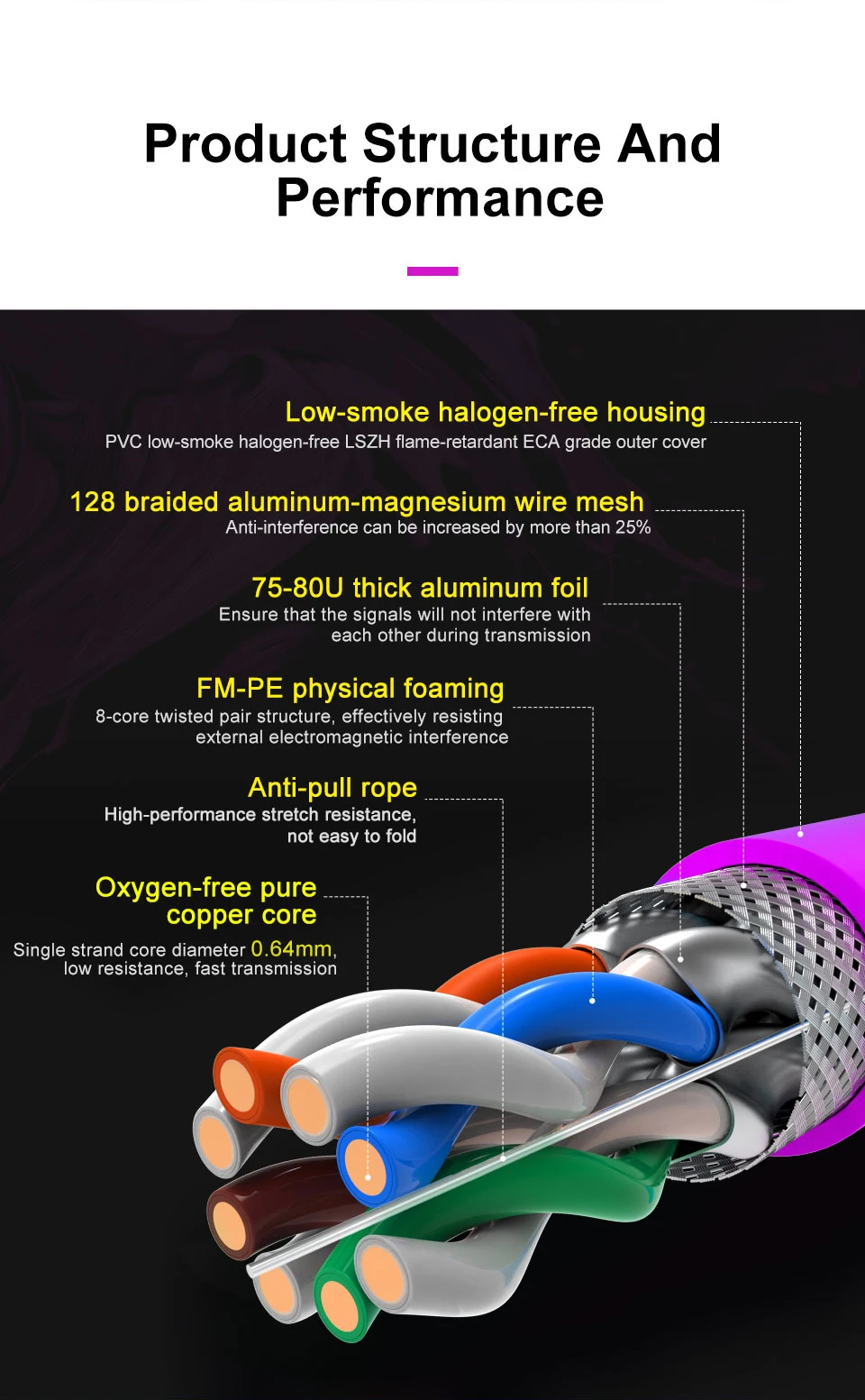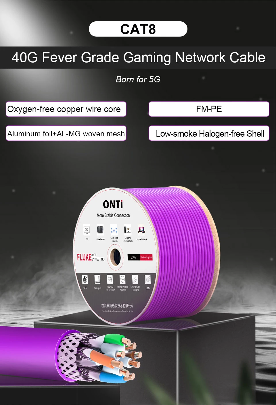 Comprar ONTi-CABLE blindado RJ45 CAT8, 40Gbps, 2000MHz, S/FTP, 22AWG, 4PR, cobre libre de oxígeno, LSZH, ANSI/TIA, 568C.2-1 e ISO/IEC TR 11801