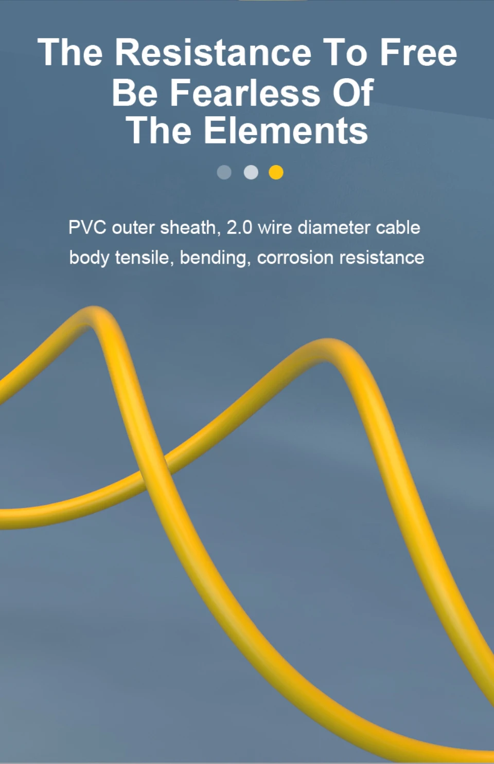 Funda exterior de PVC, cuerpo de cable de 2,0 de diámetro de cable extensible, flexión, resistencia a la corrosión.