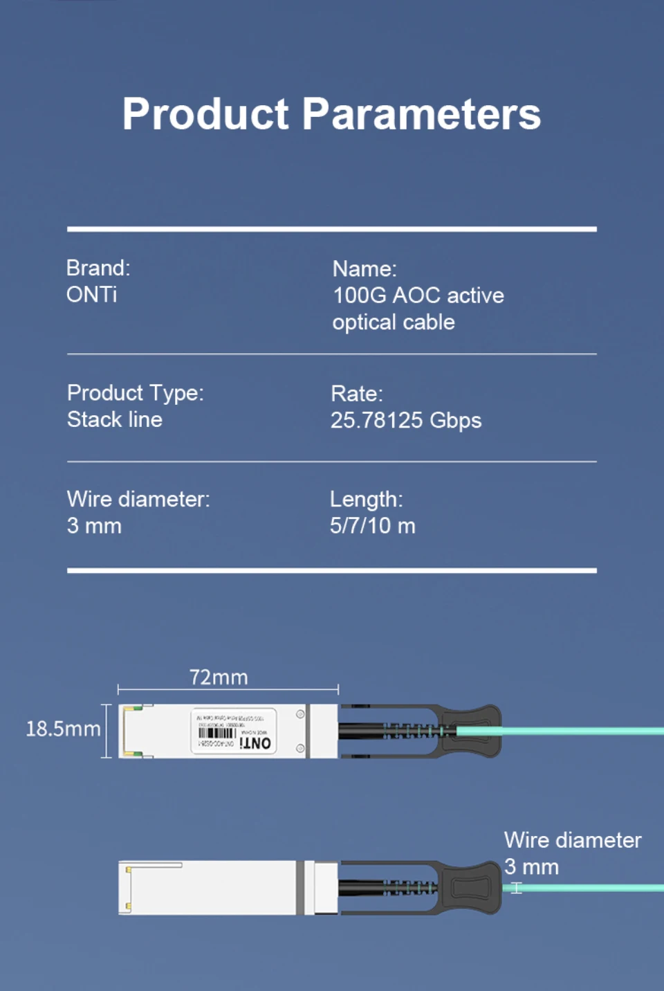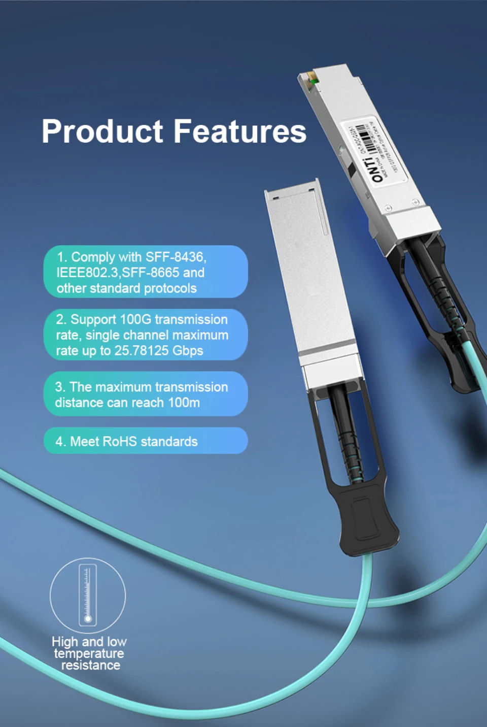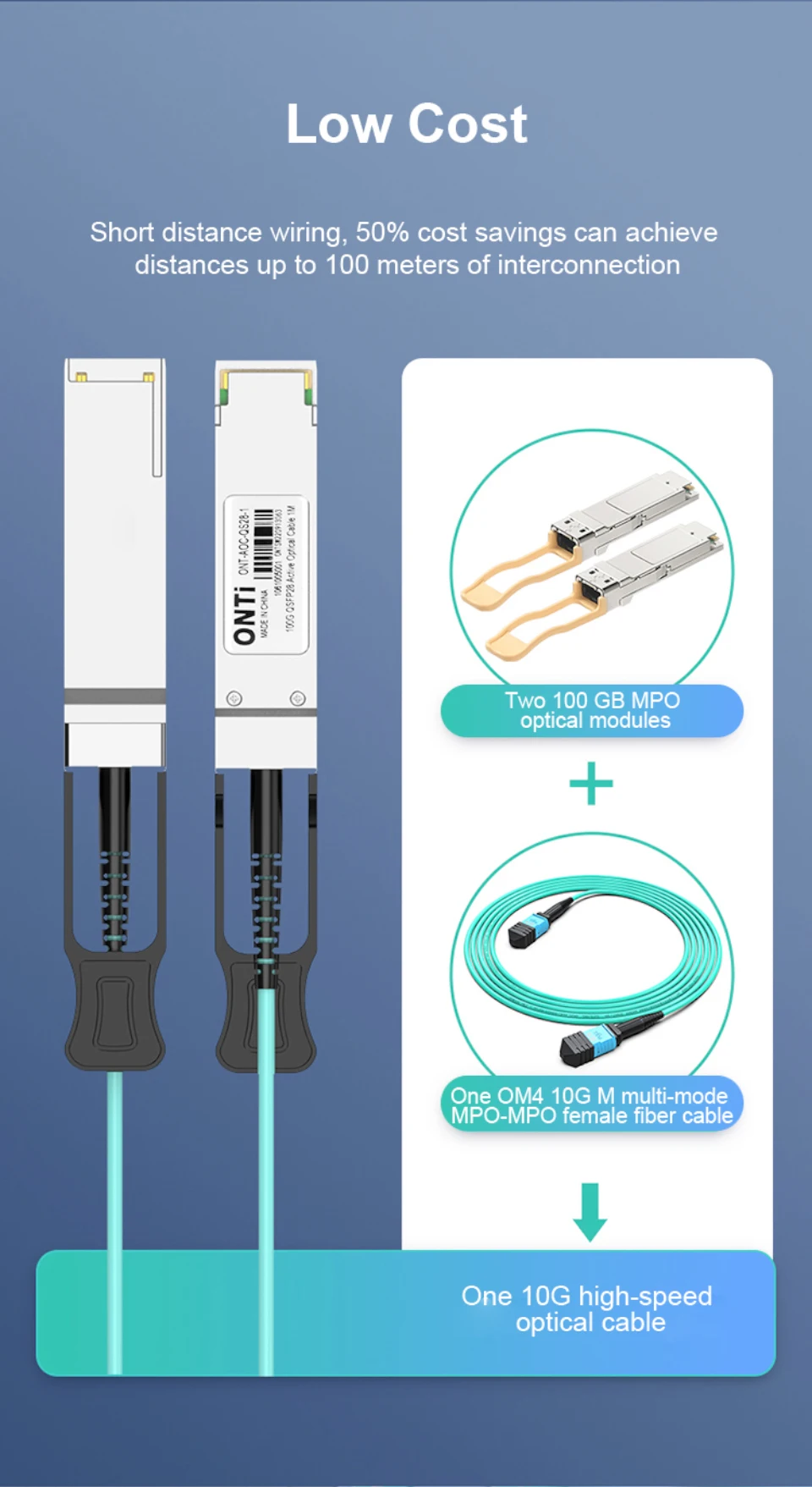 Comprar ONTi-Cable de fibra óptica activa, QSFP28, AOC, OM4, 1-100m, para Cisco,Huawei,MikroTik,HP,Intel,Dell,Etc Switch
