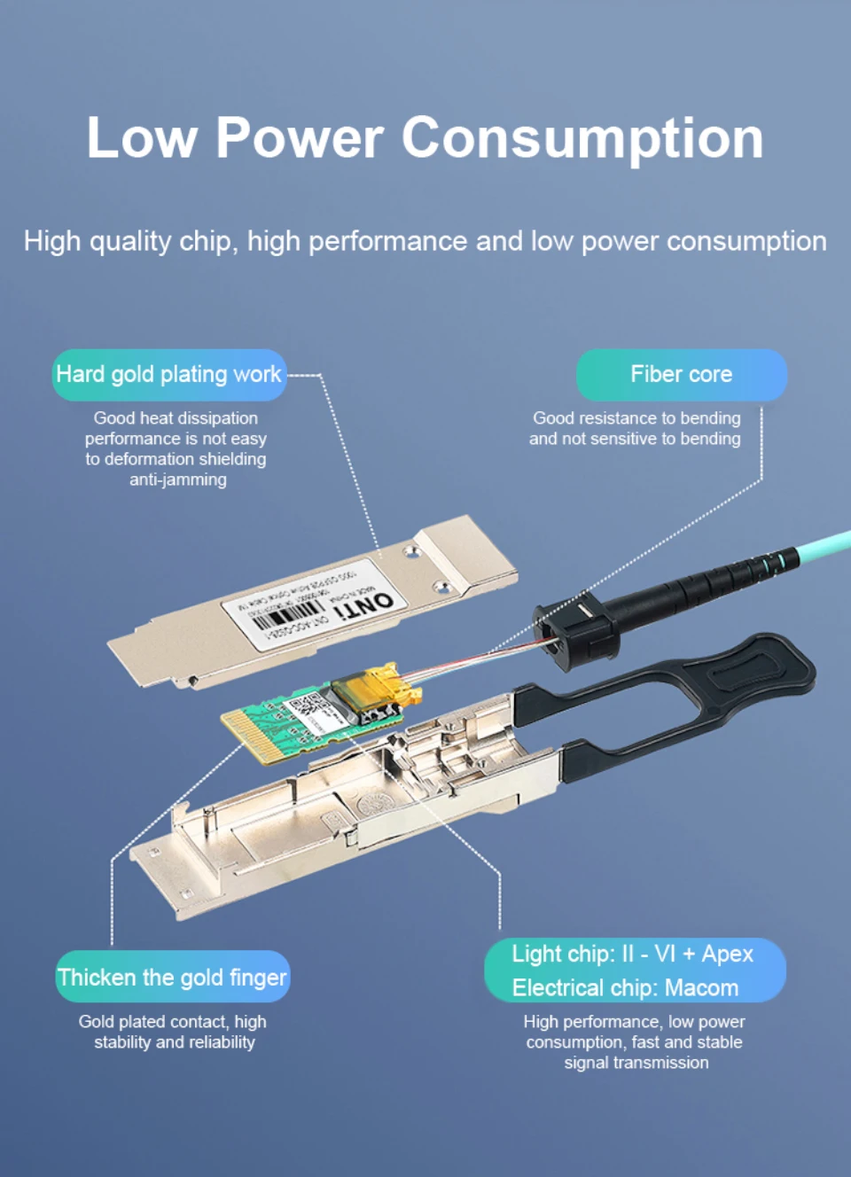 1. Cumplir con SFF-8436,IEEE802.3,SFF-8665 y otros protocolos estándar.