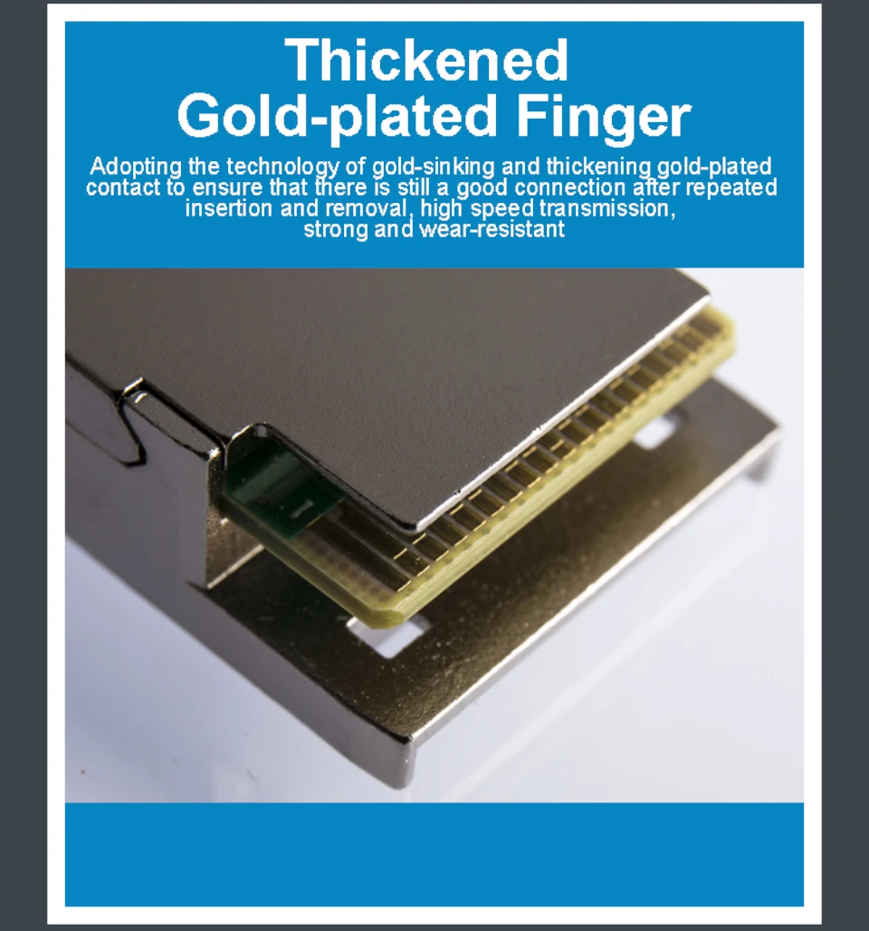 Adoptando la tecnología de contacto chapado en oro hundido y engrosado para garantizar que todavía haya una buena conexión después de la inserción y extracción repetidas, transmisión de alta velocidad, fuerte y resistente al desgaste.