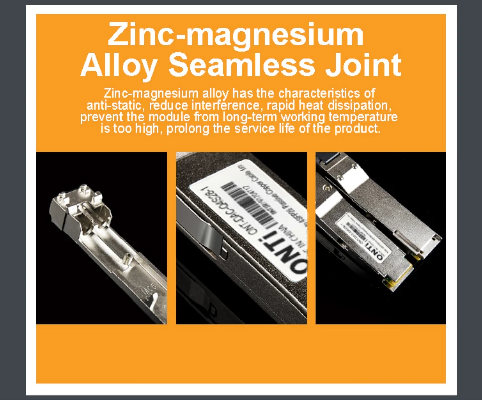 La aleación de zinc y magnesio tiene las características de antiestático, reduce las interferencias, rápida disipación del calor, evita que el módulo tenga una temperatura de trabajo a largo plazo demasiado alta y prolonga la vida útil del producto.