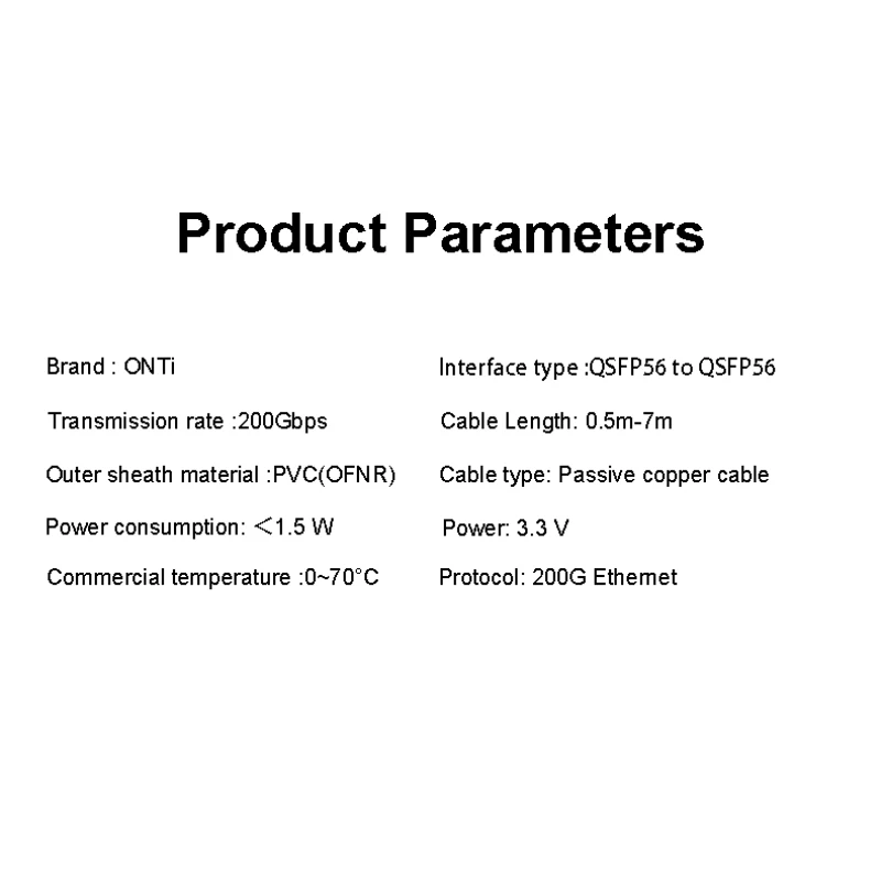 Comprar ONTi-Cable Twinax de cobre de conexión directa pasiva, 200G, QSFP56, cable DAC, 0,5 m, 1 m, 2 m, puente de 3 M, para Cisco, Dell, HP, etc.