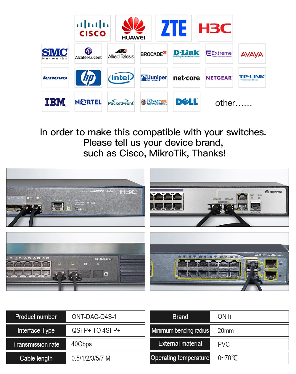 Comprar ONTi-Cable Twinax de cobre de conexión directa pasiva híbrida, QSFP+ a 4xSFP+ DAC, 0,5 m, 1 m, 2 m, 3 M, 5 m, 7 M, alta calidad