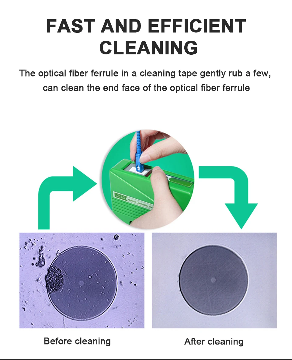 1 cinta de casete limpiador de fibra óptica para conector y adaptador de fibra óptica 500 + tiempo de vida ONTi caja de limpieza envío gratis