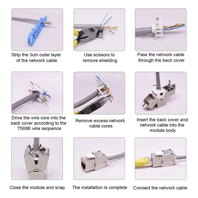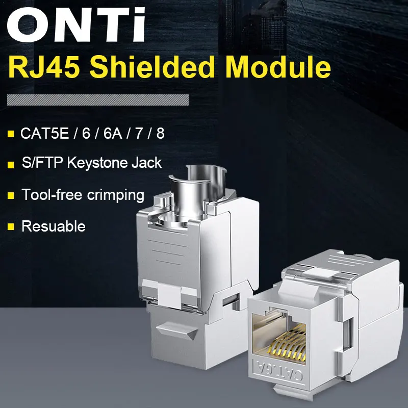 ONTi RJ45 CAT8 Módulo de conector Keystone blindado STP sin herramientas, adaptador de acoplador de red de aleación de Zinc Cat7 CAT6A CAT6 CAT5E autoblocante