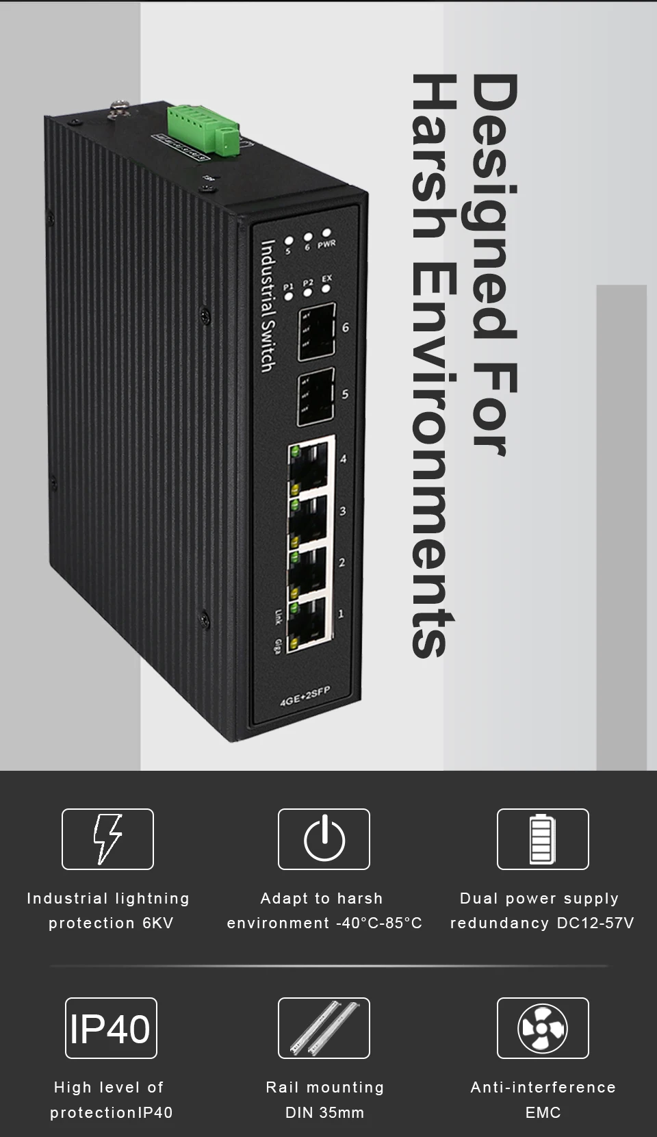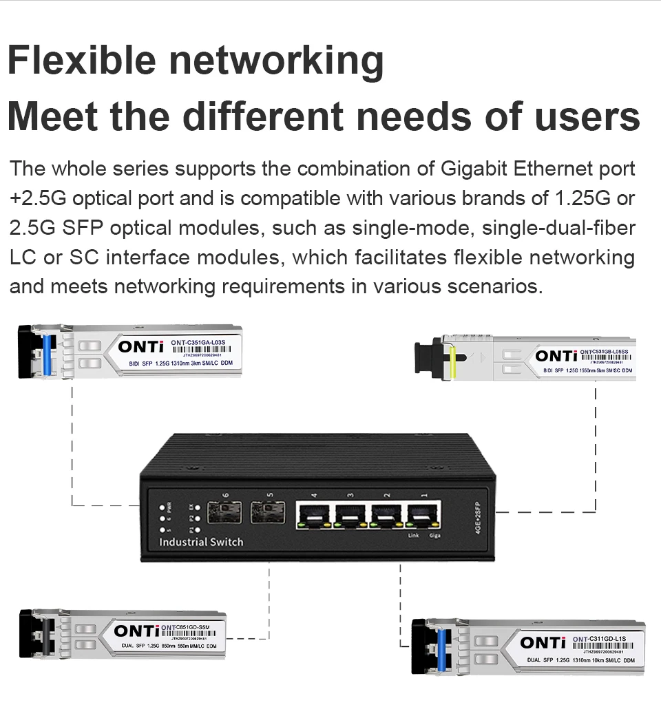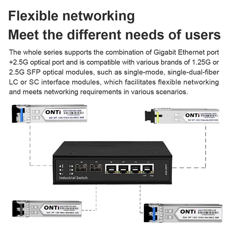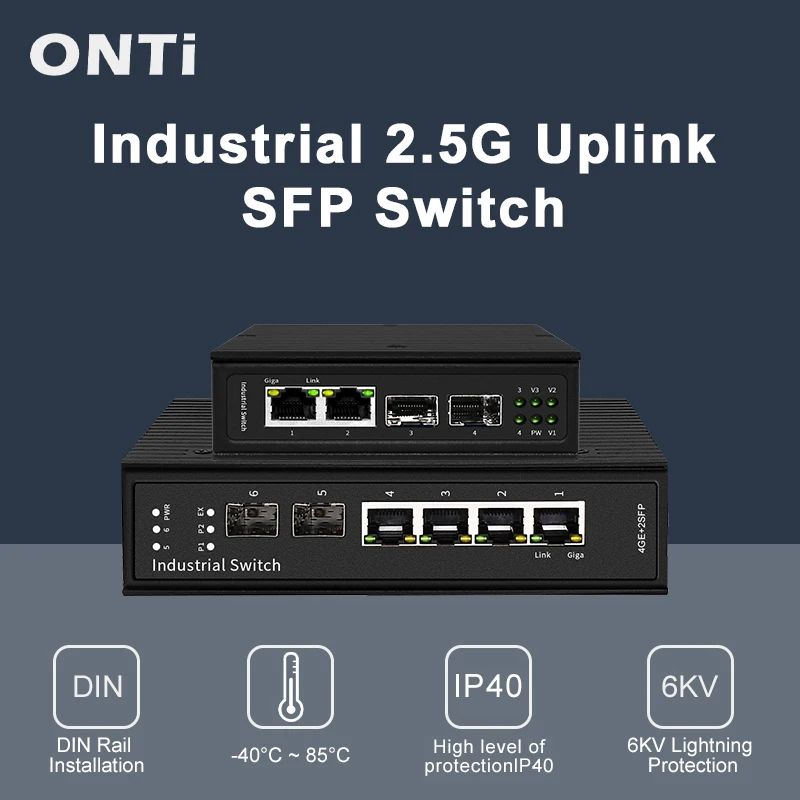 Comprar ONTi-Switch de enlace ascendente industrial, puertos RJ45, 2*1000M, ranuras SFP 2*2,5G, 4*1000M, puertos RJ45, ranuras SFP 2*2,5G