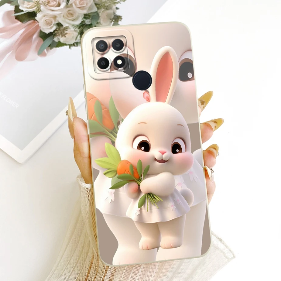 Para Oppo A15 funda CPH2185 funda bonita de dibujos animados de conejo fundas de teléfono de TPU suave a prueba de golpes para Oppo A15s A 15 s OppoA15 OppoA15s Fundas