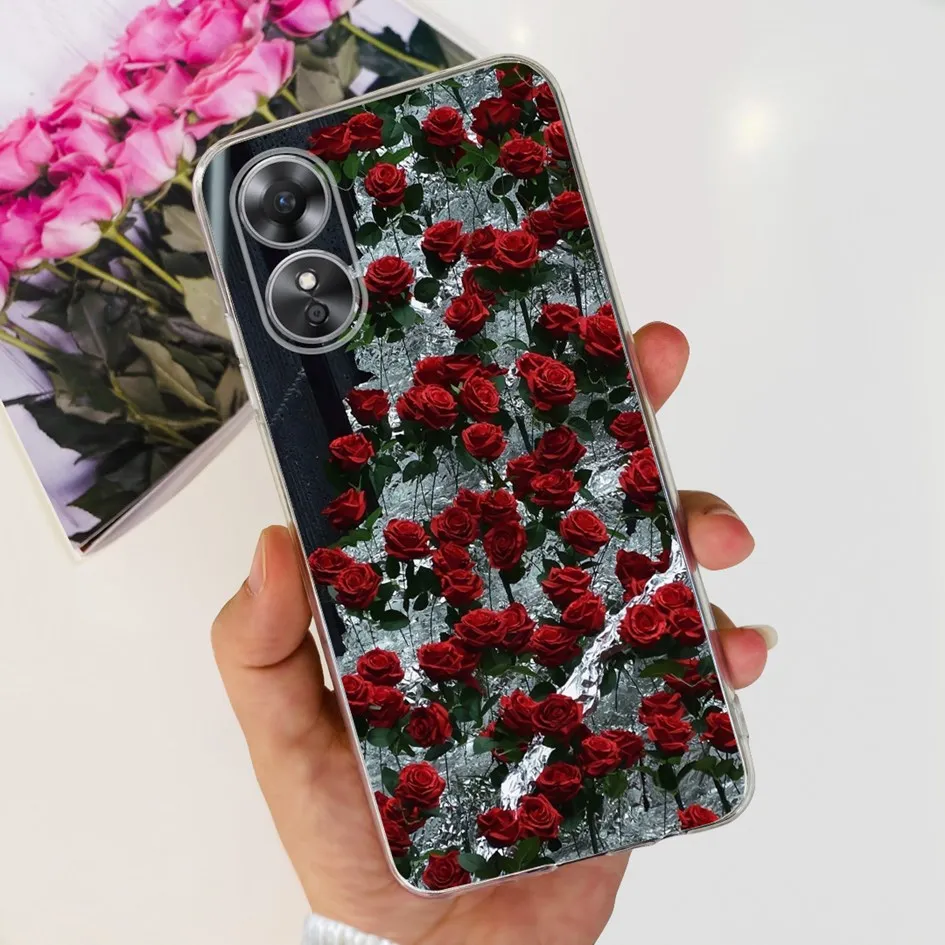 Para OPPO A17 funda OPPOA17 funda Popular flor mariposa suave silicona parachoques a prueba de golpes para OPPO A 17 funda CPH2477 fundas de teléfono