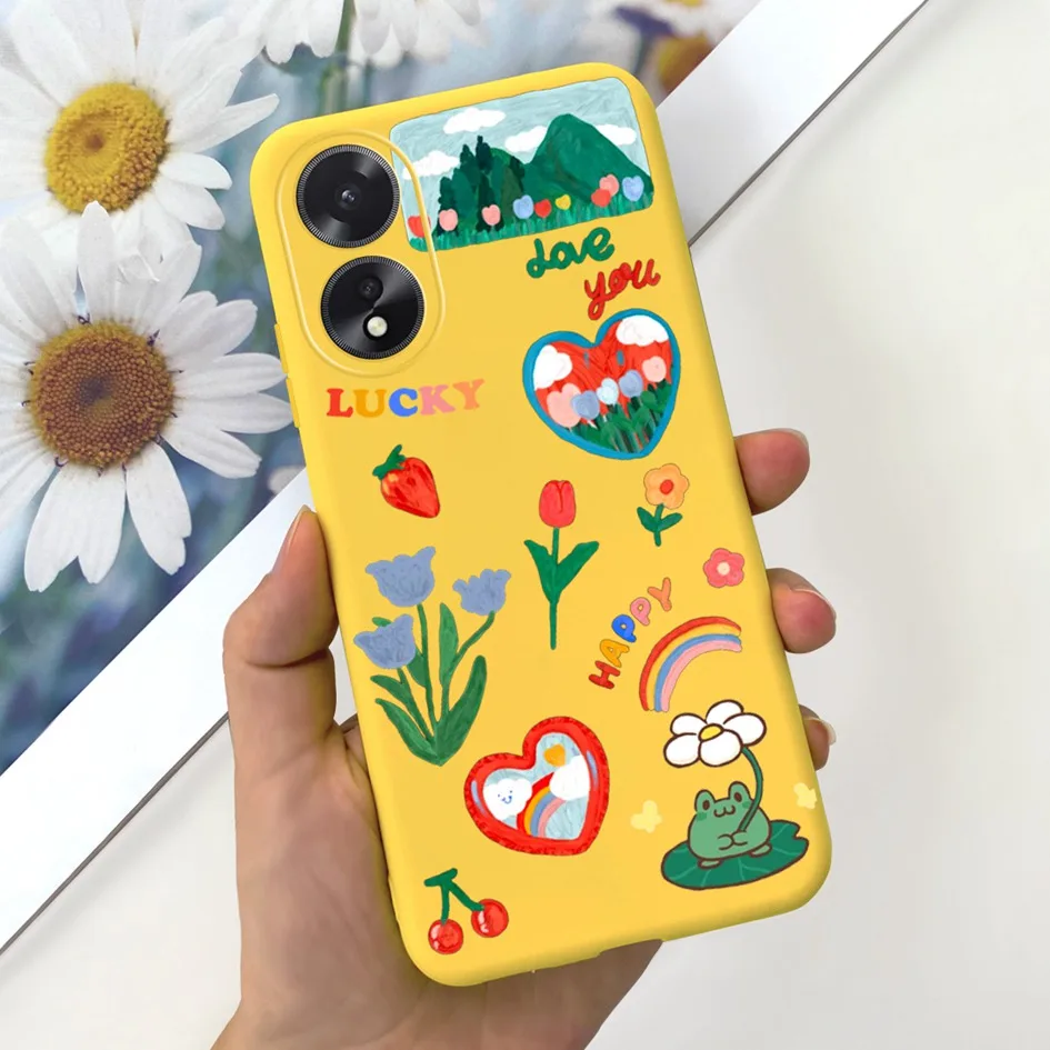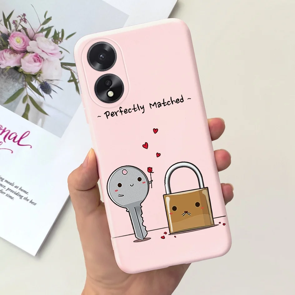 Comprar Para OPPO A18 Funda CPH2591 lindo amor corazón vaca cubierta de dibujos animados silicona suave para OPPO A38 CPH2579 A 38 A 18 parachoques en OPPOA38 Funda