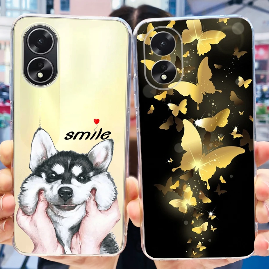 Para Oppo A38 funda Oppo A18 elegante funda pintada de silicona transparente suave TPU funda de teléfono para Oppo A18 A 38 OppoA18 OppoA38 contraportada