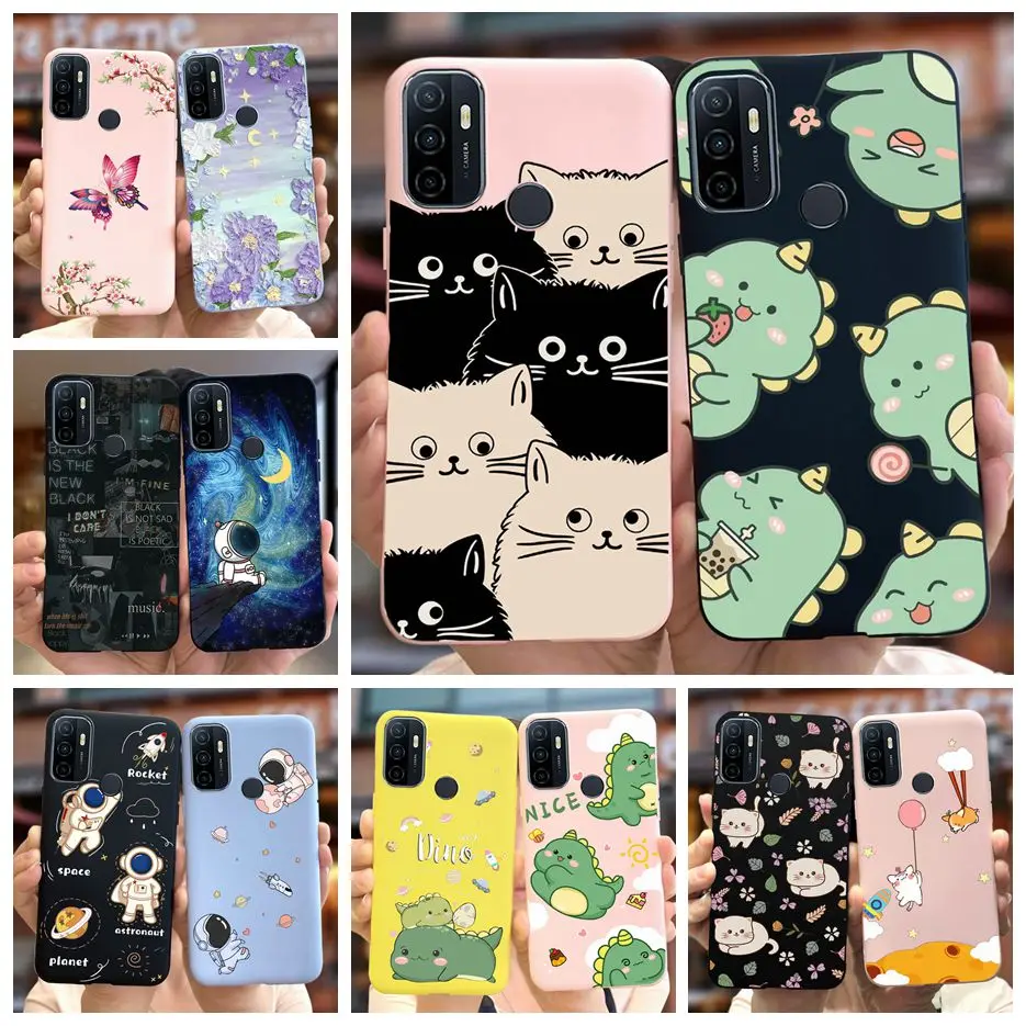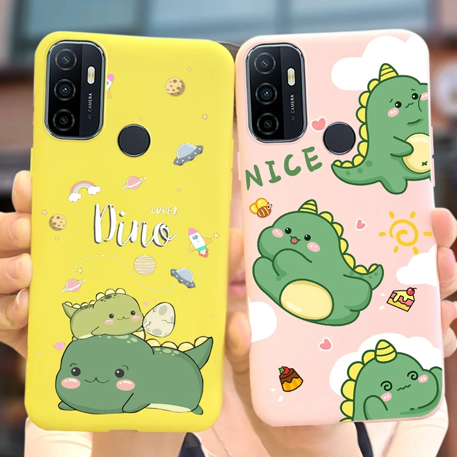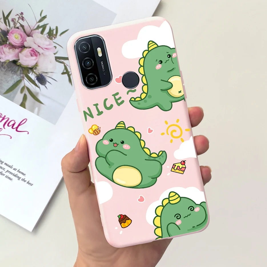 Para Oppo A53 funda Oppo A53s CPH2139 bonita funda de dibujos animados de dinosaurio funda de teléfono de silicona suave para Oppo A53 A 53 s OppoA53 Fundas Capa