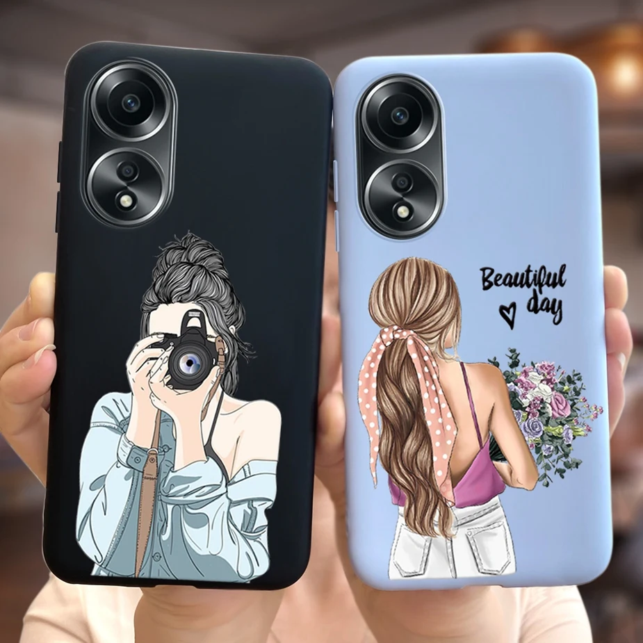 Para Oppo A58 4G funda CPH2577 Linda moda de dibujos animados niñas funda de teléfono de silicona suave para Oppo A58 A 58 OppoA58 4G Coque parachoques