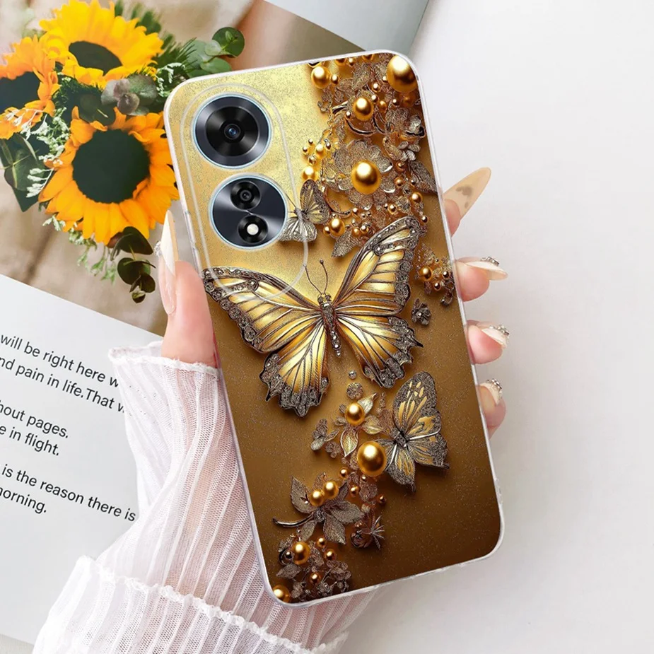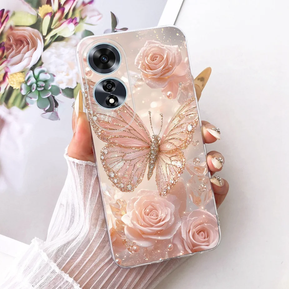 Para Oppo A60 4G funda CPH2631 flores de lujo cubierta pintada de mariposa funda de teléfono delgada suave para Oppo A60 A 60 OppoA60 5G fundas bolsas