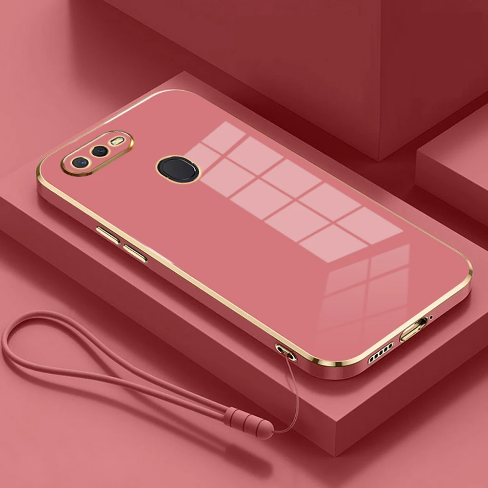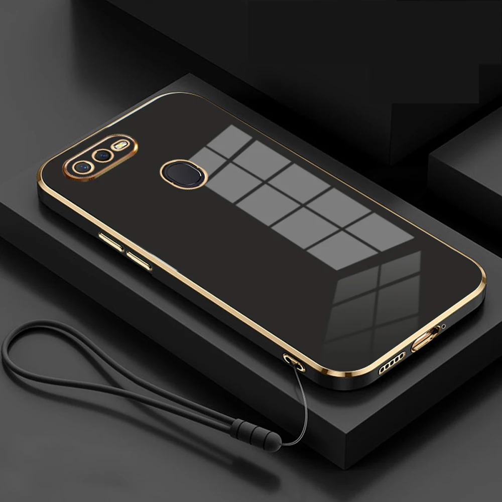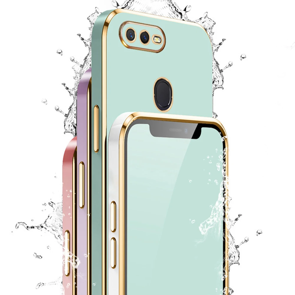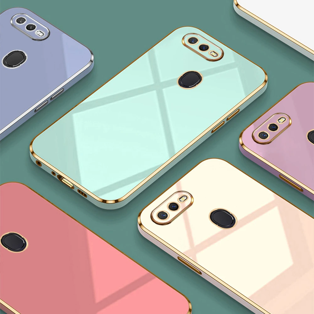 Comprar Para oppo A7 funda de lujo chapada cuadrada OPPO A5S funda de teléfono Oppo A7N AX7 A12 A7X funda trasera de silicona a prueba de golpes OPPO F9 Pro