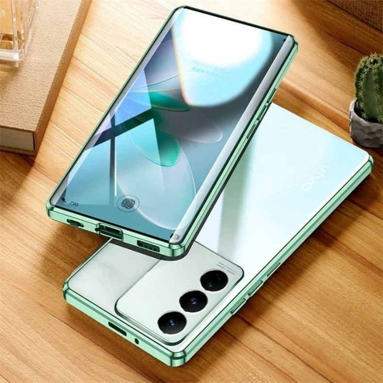 La parte delantera y trasera son de vidrio templado, ya no necesitan protector de pantalla.Los imanes conectan la parte delantera y trasera.Muy conveniente.