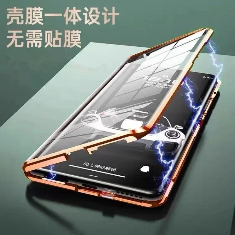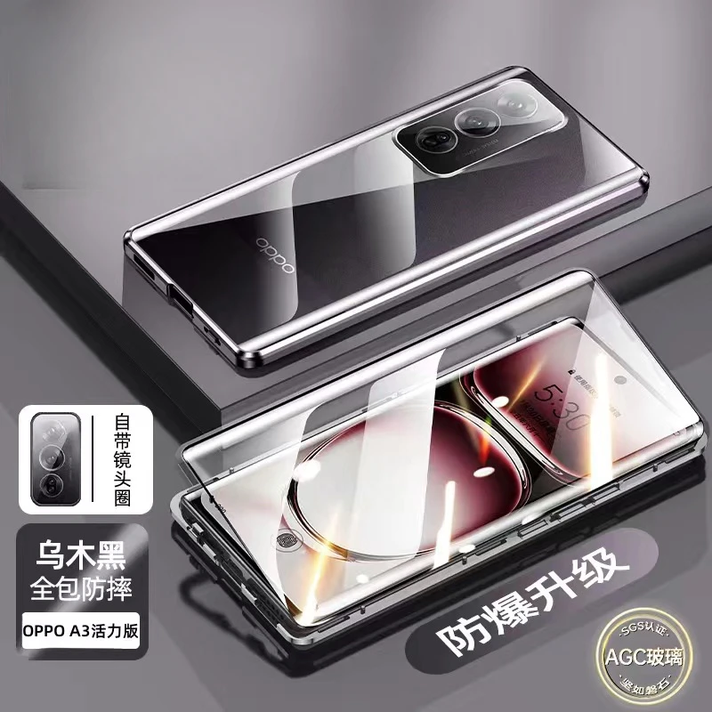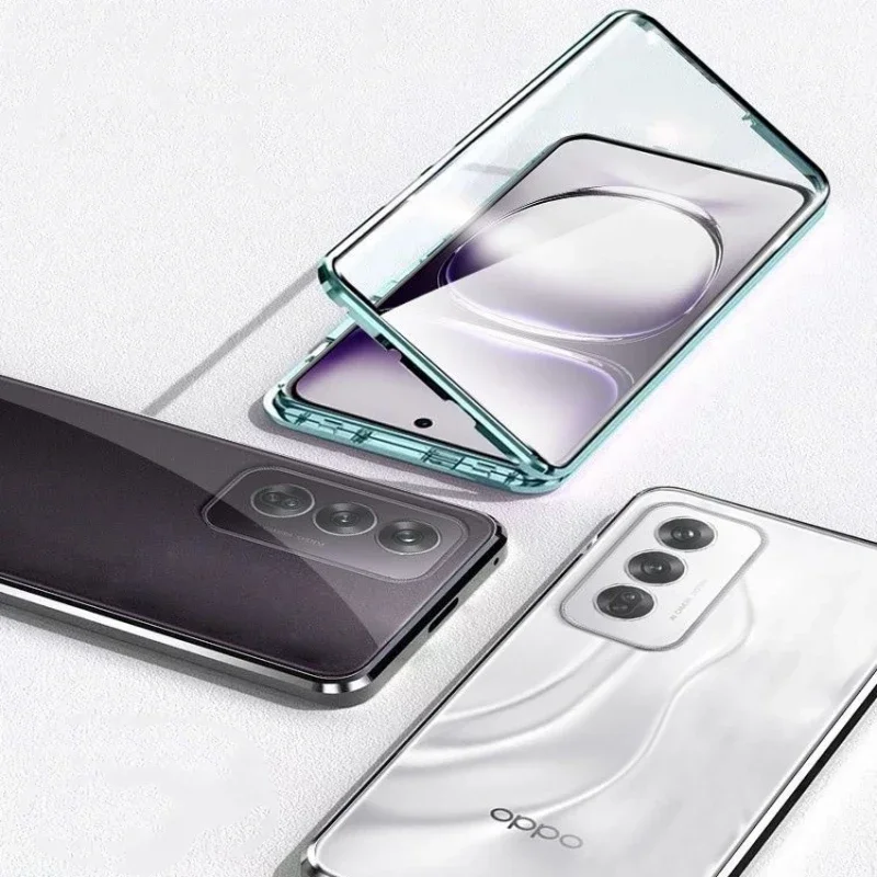 Comprar Para OPPO A80 5G A40 4G A40M funda de vidrio templado de doble cara de adsorción magnética para Oppo A60 A3X A3 Pro cubierta dura con marco de Metal