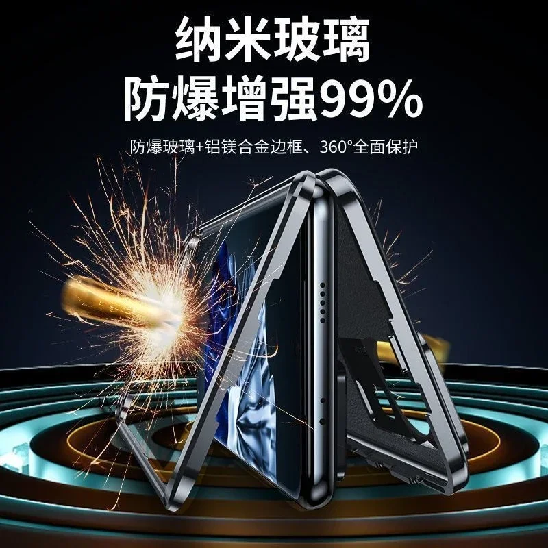 La parte delantera y trasera son de vidrio templado, ya no necesitan protector de pantalla.Los imanes conectan la parte delantera y trasera.Muy conveniente.