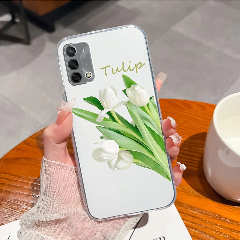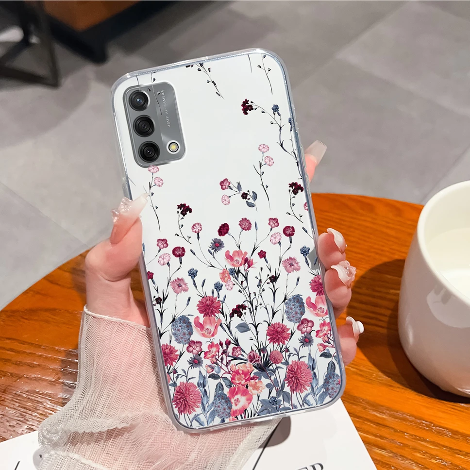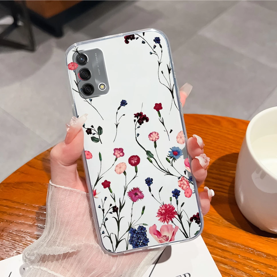 Comprar Para Oppo F19 Pro Plus F19S Funda de teléfono encantadoras flores oso TPU transparente silicona parachoques para Oppo F 19 Pro + Funda ligera